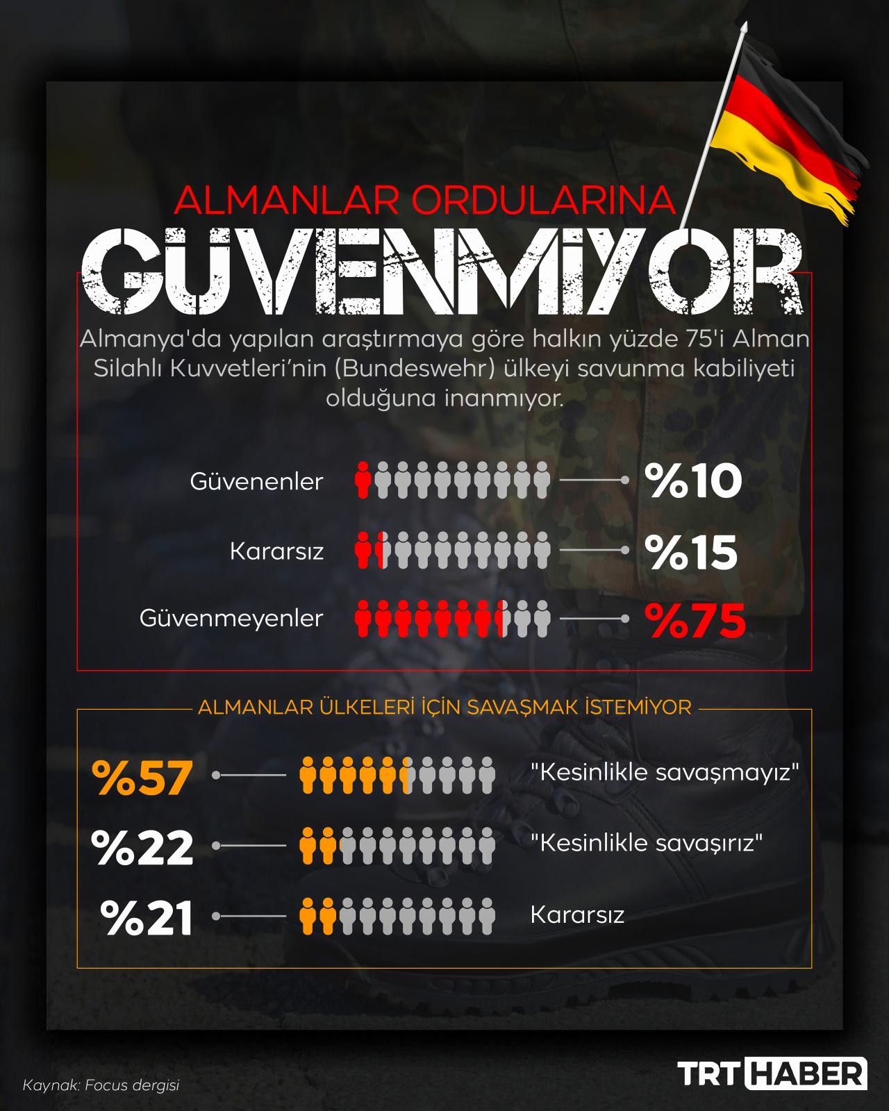 Almanya'da yapılan araştırmaya göre halkın yüzde 75'i Alman Silahlı Kuvvetlerinin (Bundeswehr) ülkeyi savunma kabiliyeti olduğuna inanmıyor.