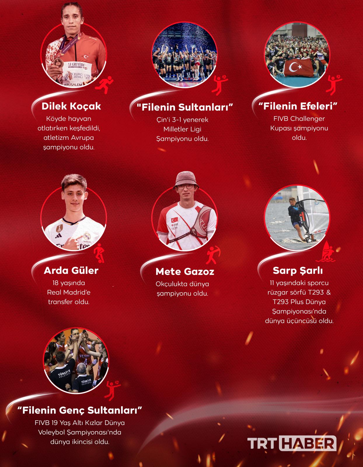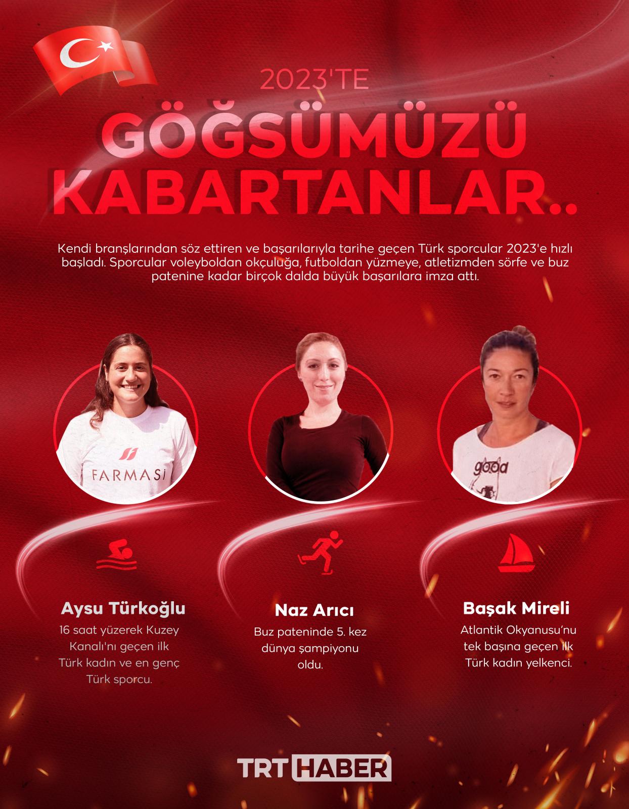 Kendi branşlarından söz ettiren ve başarılarıyla tarihe geçen Türk sporcular 2023'e hızlı başladı. Sporcular voleyboldan okçuluğa, futboldan yüzmeye, atletizmden sörfe ve buz patenine kadar birçok dalda büyük başarılara imza attı.