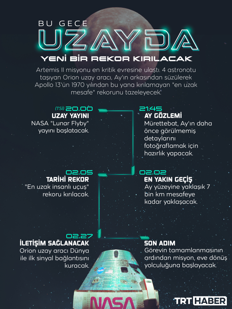 Artemis II misyonu en kritik evresine ulaştı. 4 astronotu taşıyan Orion uzay aracı, Ay'ın arkasından süzülerek Apollo 13'ün 1970 yılından bu yana kırılamayan "en uzak mesafe" rekorunu tazeleyecek.