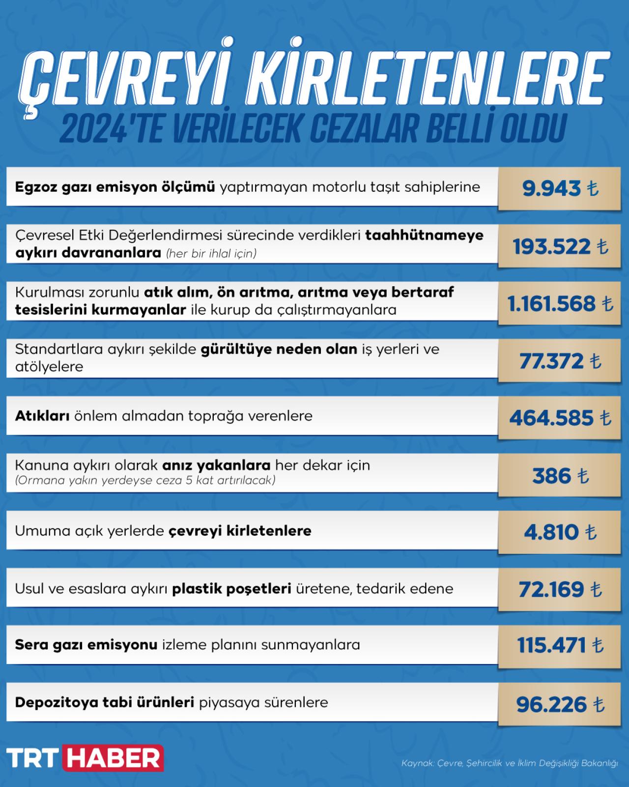 Çevre, Şehircilik ve İklim Değişikliği Bakanlığınca 2024'te çevreyi kirletenlere uygulanacak idari para cezaları belirlendi.