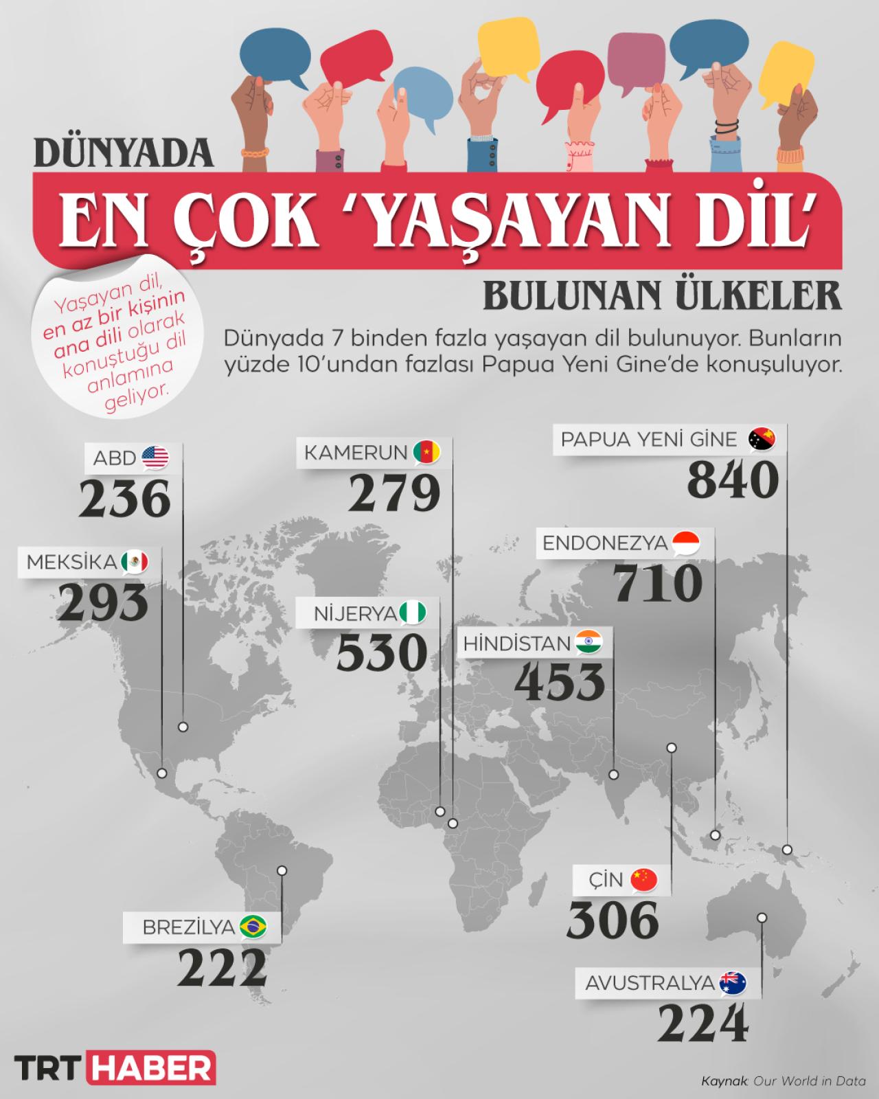 Bu dillerin yüzde 10'undan fazlası Papua Yeni Gine’de konuşuluyor. İşte en fazla 'yaşayan dil' bulunan ülkeler…