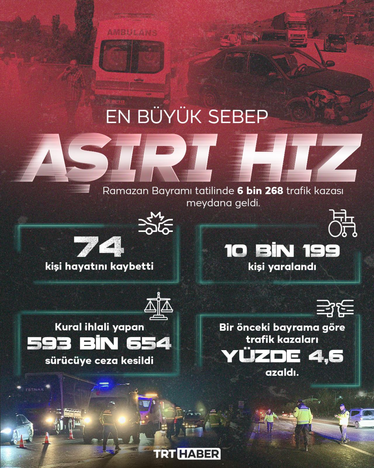 Ramazan Bayramı tatilinde 6 bin 268 trafik kazası meydana geldi.