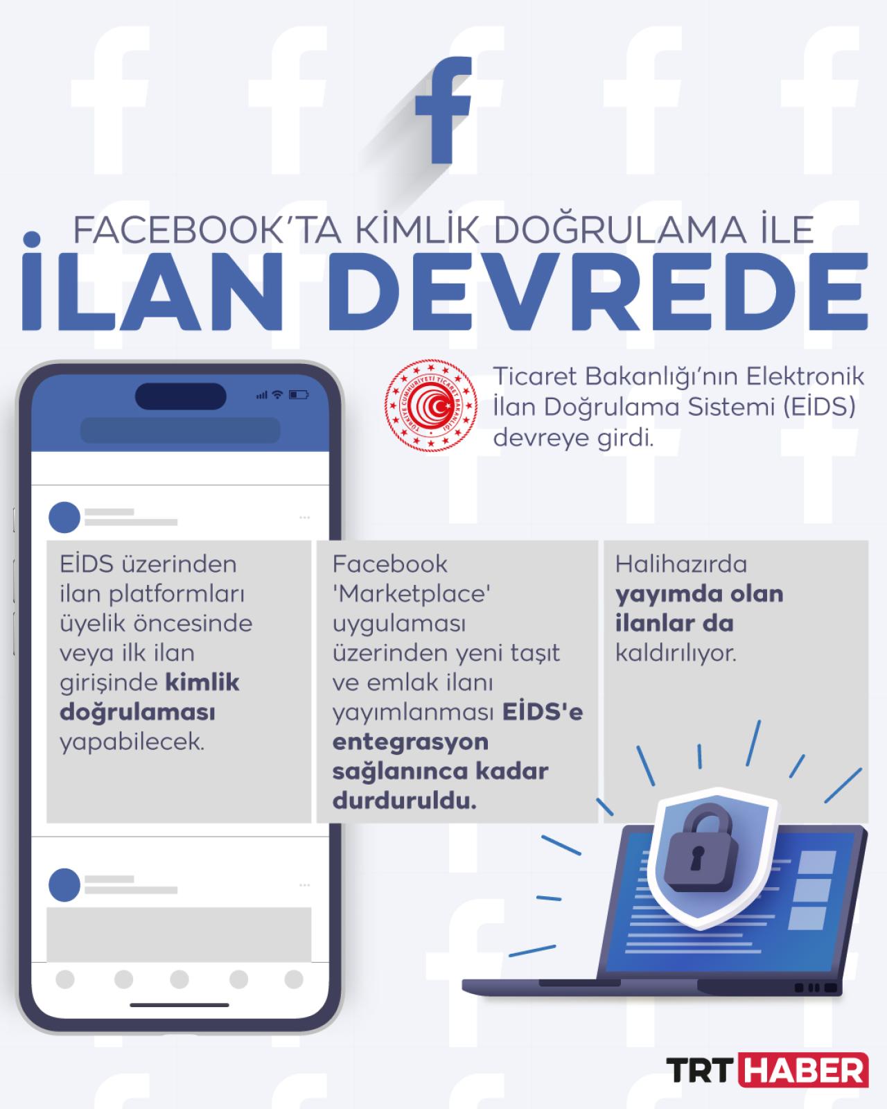 Ticaret Bakanlığı, Facebook'ta artık kimlik doğrulama ile ilan verilebileceğini, entegrasyon sağlanana kadar yeni ilan yayımlanmayacağını, halihazırda yayında olan ilanların da kaldırılacağını duyurdu.
