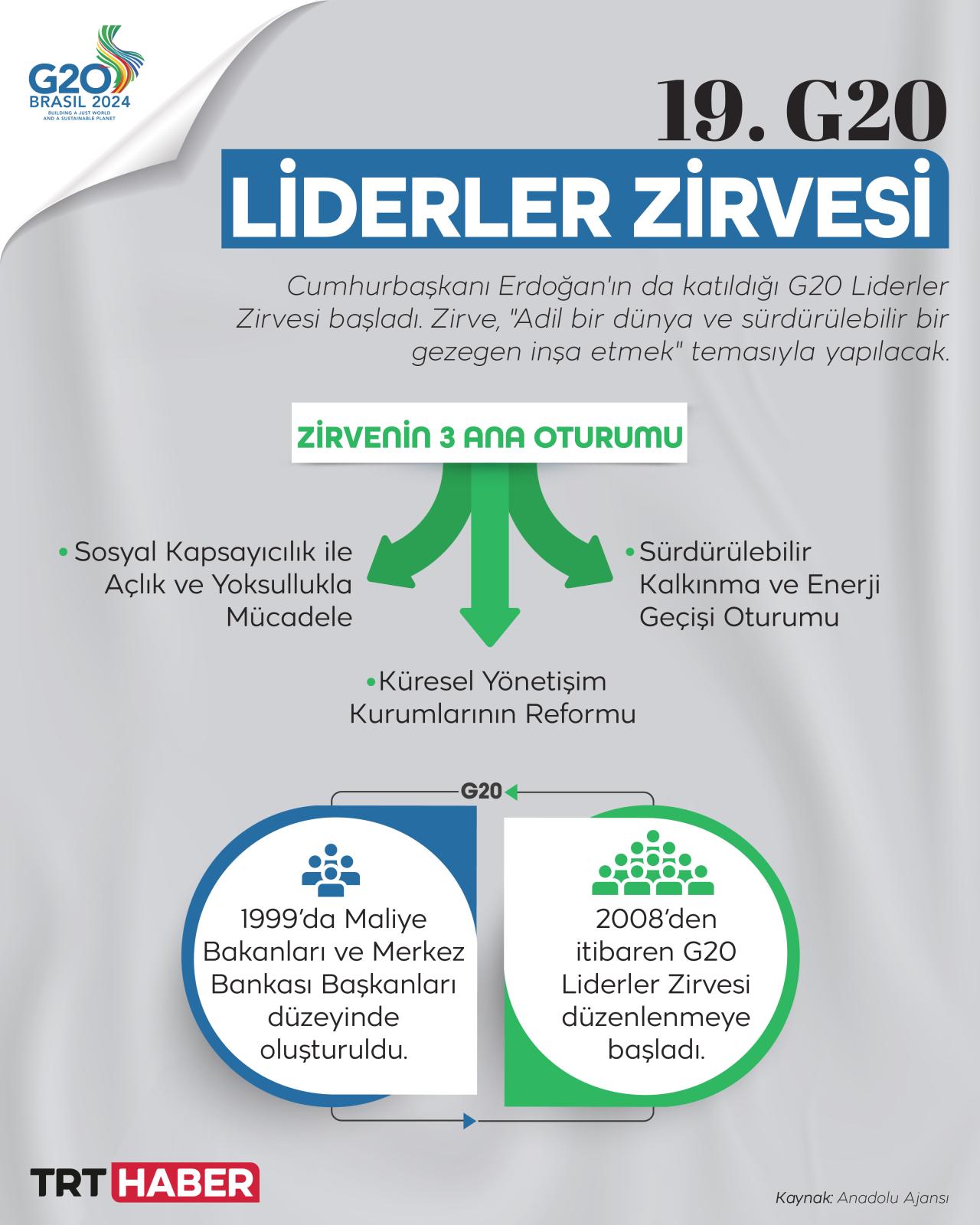 G20 Liderler Zirvesi, Brezilya'nın Rio de Janeiro kentinde, "Adil bir dünya ve sürdürülebilir bir gezegen inşa etmek" temasıyla başladı.