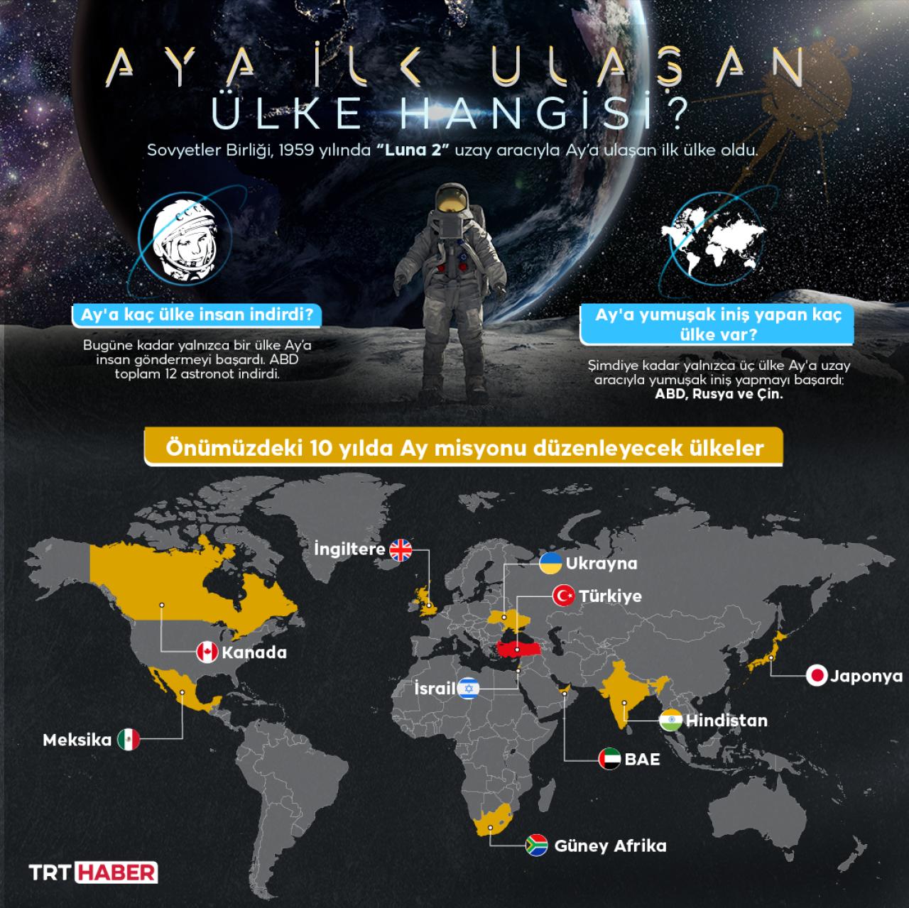 Milyonlarca ışık yılı uzaklıktaki galaksileri görüntüleyebilsek de en yakın komşumuz Ay hala gizemlerle dolu. İşte bu gizemleri ortadan kaldırmak ve uydumuzda bir yaşam alanı oluşturmak için Ay'a insanlı ve insansız görevler sürüyor. Peki şimdiye kadar hangi ülke, neler yaptı ve yakın gelecekte neler olacak?