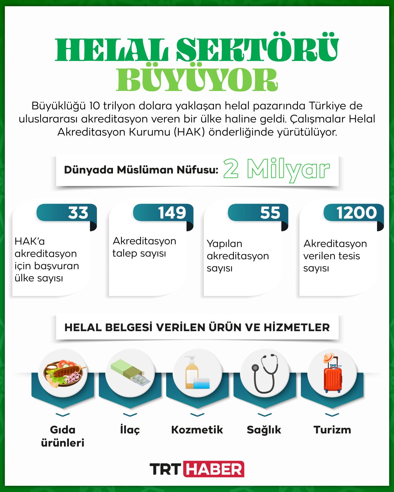 Dünyada Müslüman nüfusu 2 milyar, ‘helal’ pazarı ise 10 trilyon dolara yaklaştı. Türkiye’de Helal Akreditasyon Kurumu (HAK) öncülüğünde yapılan çalışmalarda 33 ülkeden 55 üst kuruma akreditasyon, 1200’den fazla üretim tesisine ‘helal’ belgesi verildi.