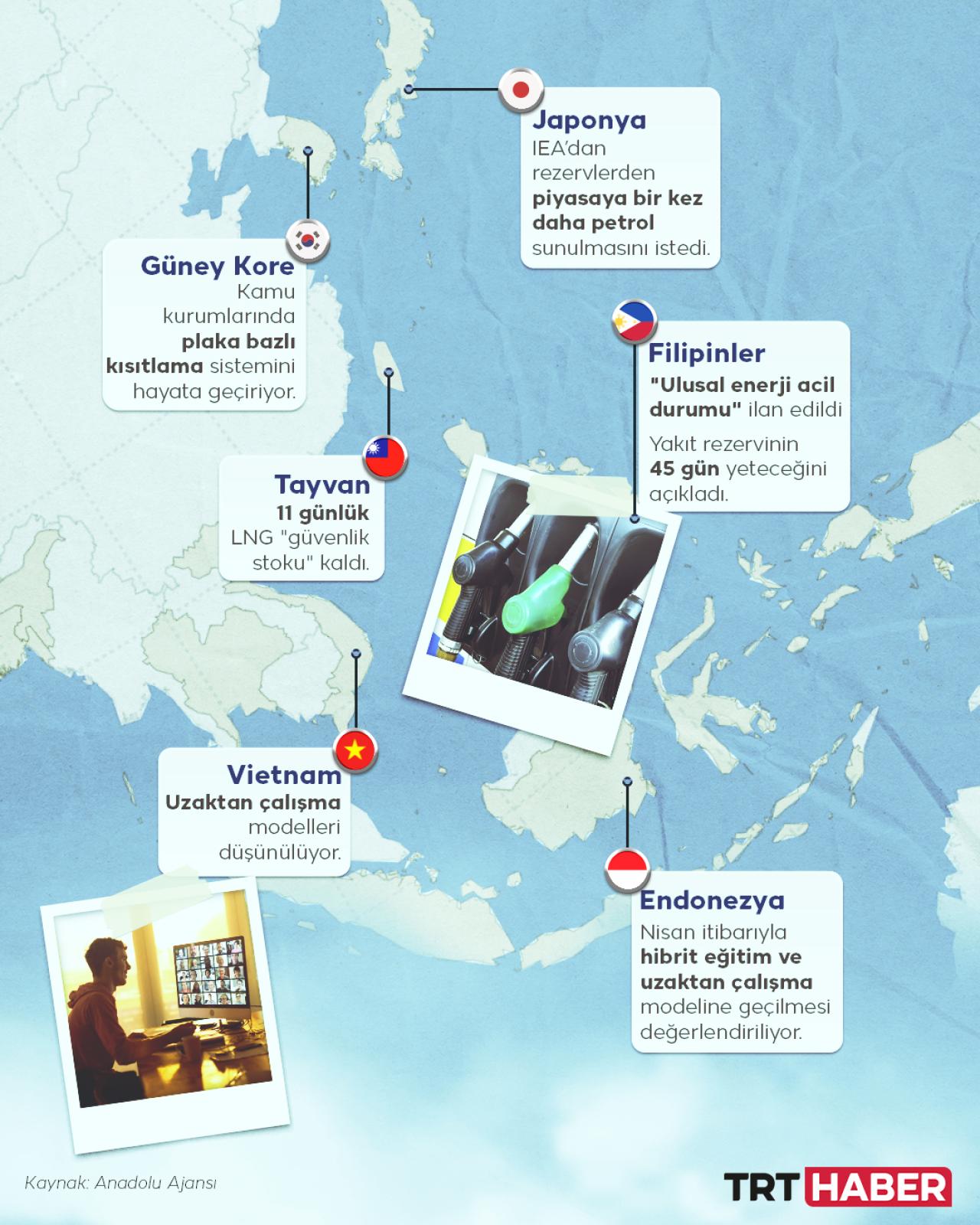 ABD ve İsrail'in 28 Şubat'ta İran'a başlattığı saldırıların ardından Hürmüz Boğazı'nın fiilen kapanması nedeniyle enerji ihtiyacını büyük ölçüde bu kritik geçiş noktasından sağlayan Asya ülkeleri, enerji kriziyle mücadele amacıyla acil durum tedbirleri uyguluyor.