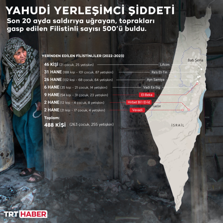 Son 20 ayda toprakları gasp edilen 500’e yakın Filistinli yerinden edildi.