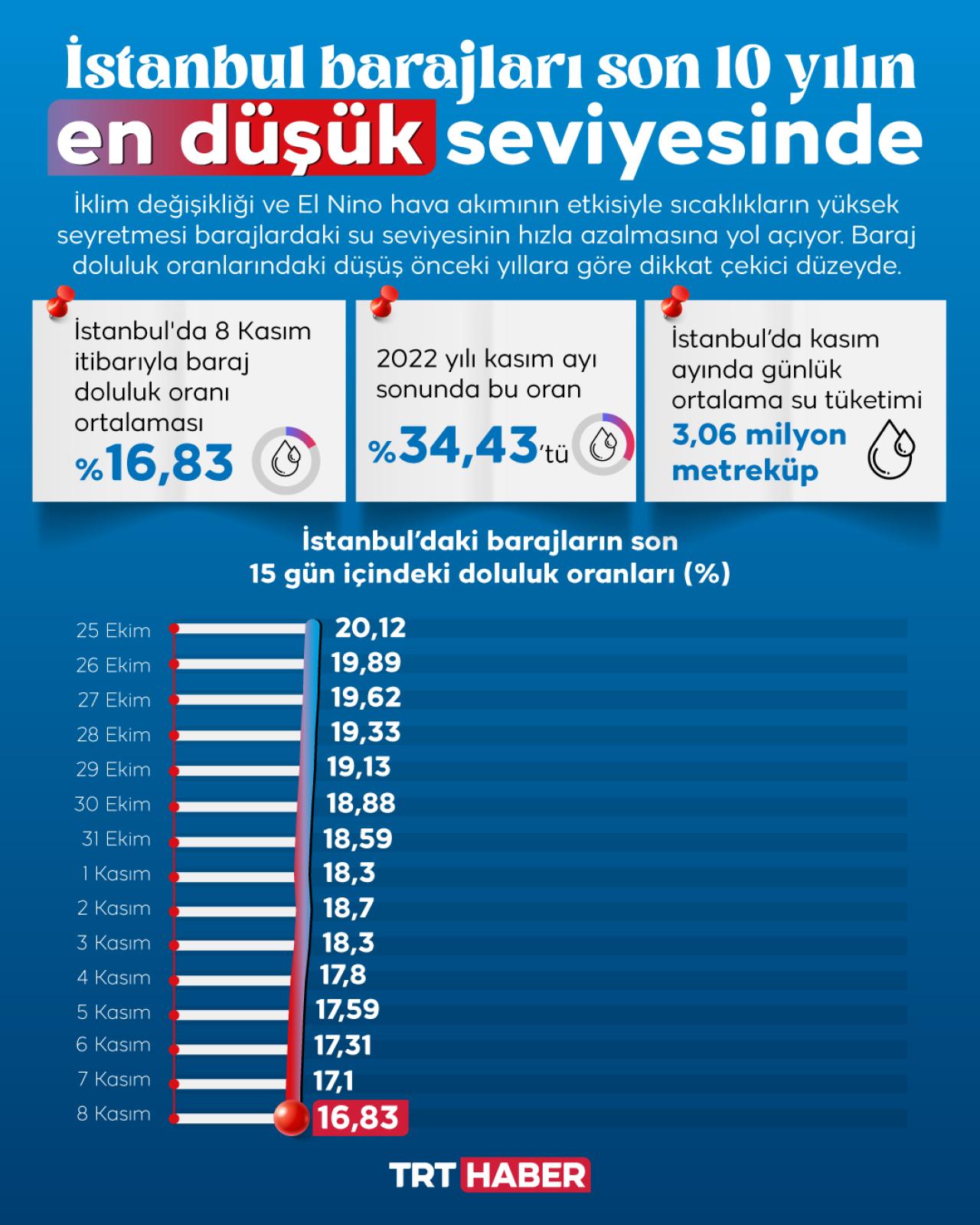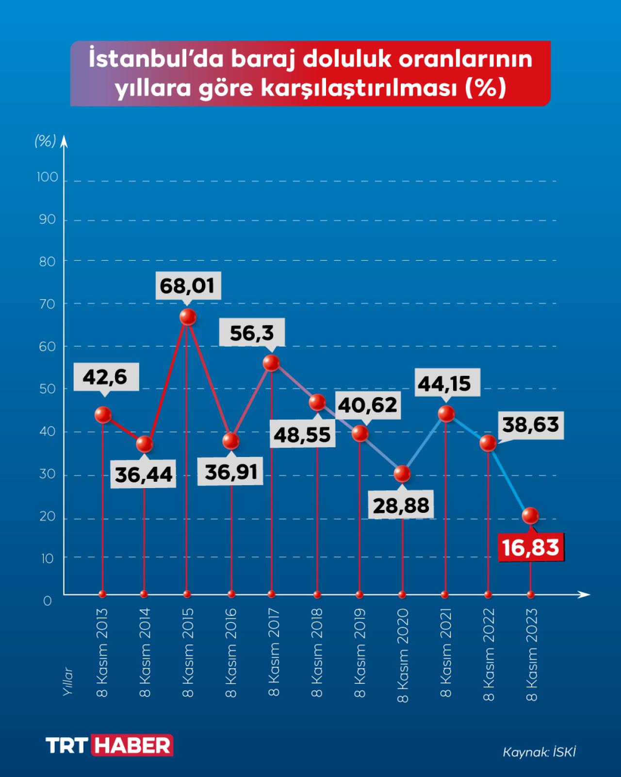 Kurak mevsim ve her geçen gün kuruma noktasına gelen barajlar… 16 milyona yakın nüfusu olan İstanbul, susuz kalma tehlikesi ile karşı karşıya. Uzun süreli kar ve yağmur yağışlarının bu kış mevsiminde de görülmeyeceğini öngören uzmanlar, su tasarrufu konusunda seferberlik ilan edilmesi gerektiğini söylüyor.