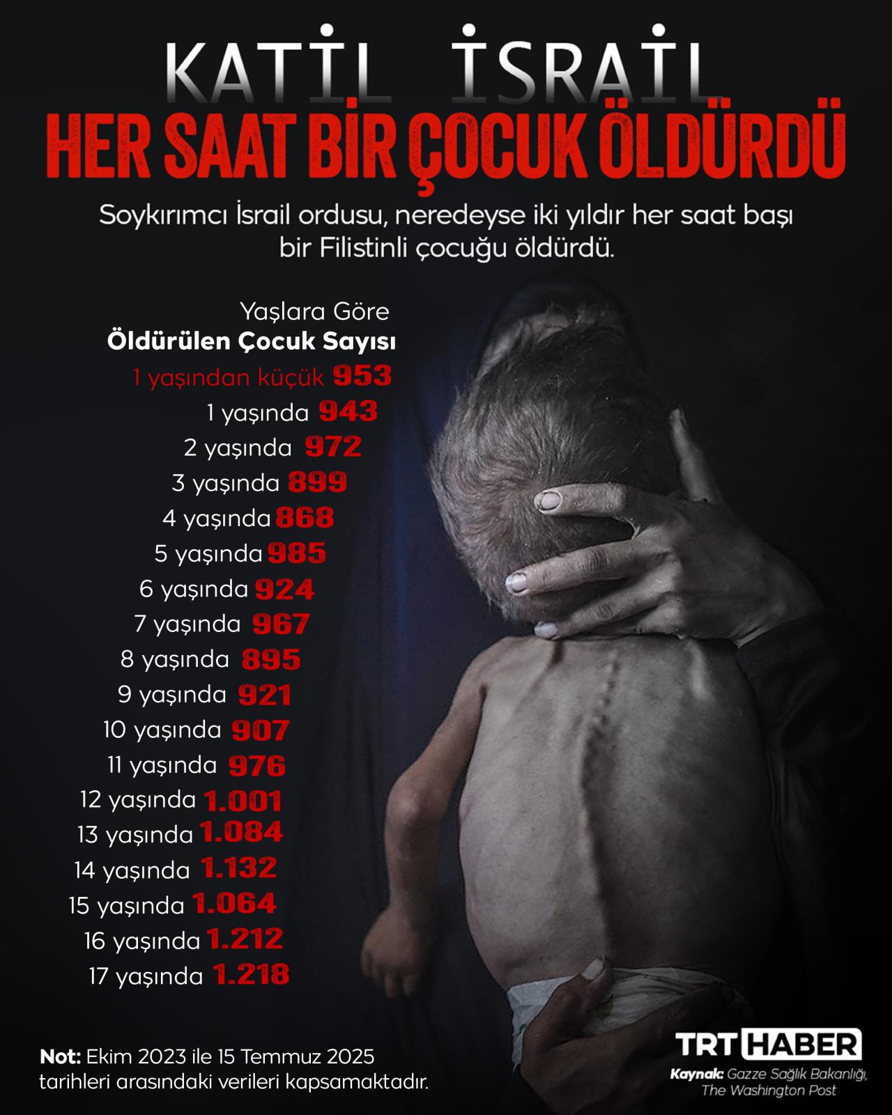 Soykırımcı İsrail ordusu, neredeyse iki yıldır her saat başı bir Filistinli çocuğu öldürdü.