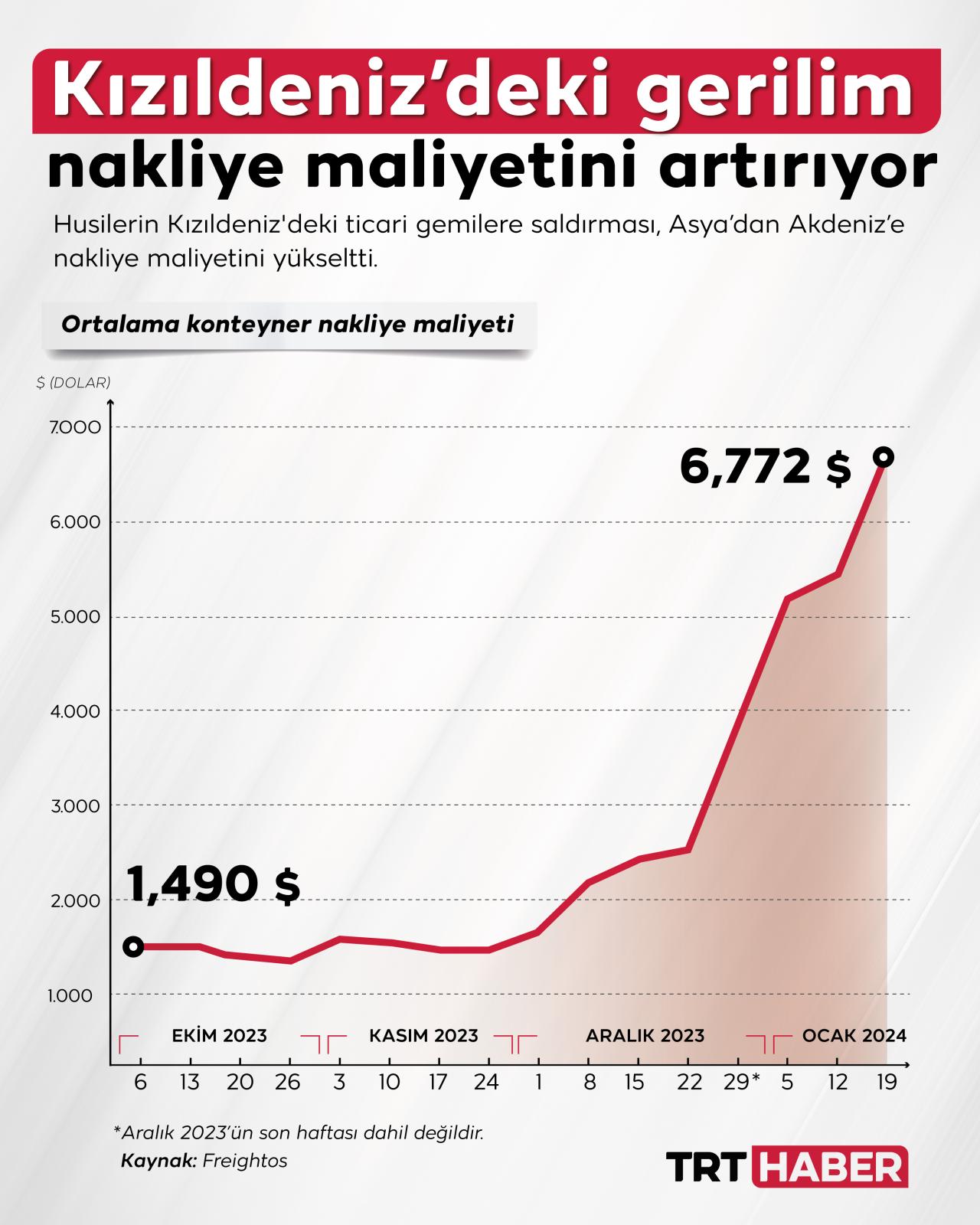 Kızıldeniz'de Husilerin İsrail'e ait ya da İsrail'e giden gemilere yönelik iki aydan beri süren füze ve insansız hava aracı saldırıları, uluslararası ticarette son yılların en büyük krizini doğurdu. Asya'dan Akdeniz'e giden nakliye maliyetleri şimdiden 4 kat arttı. Ancak krizin tırmanması daha geniş ekonomik sonuçlara ilişkin korkuları körüklüyor.