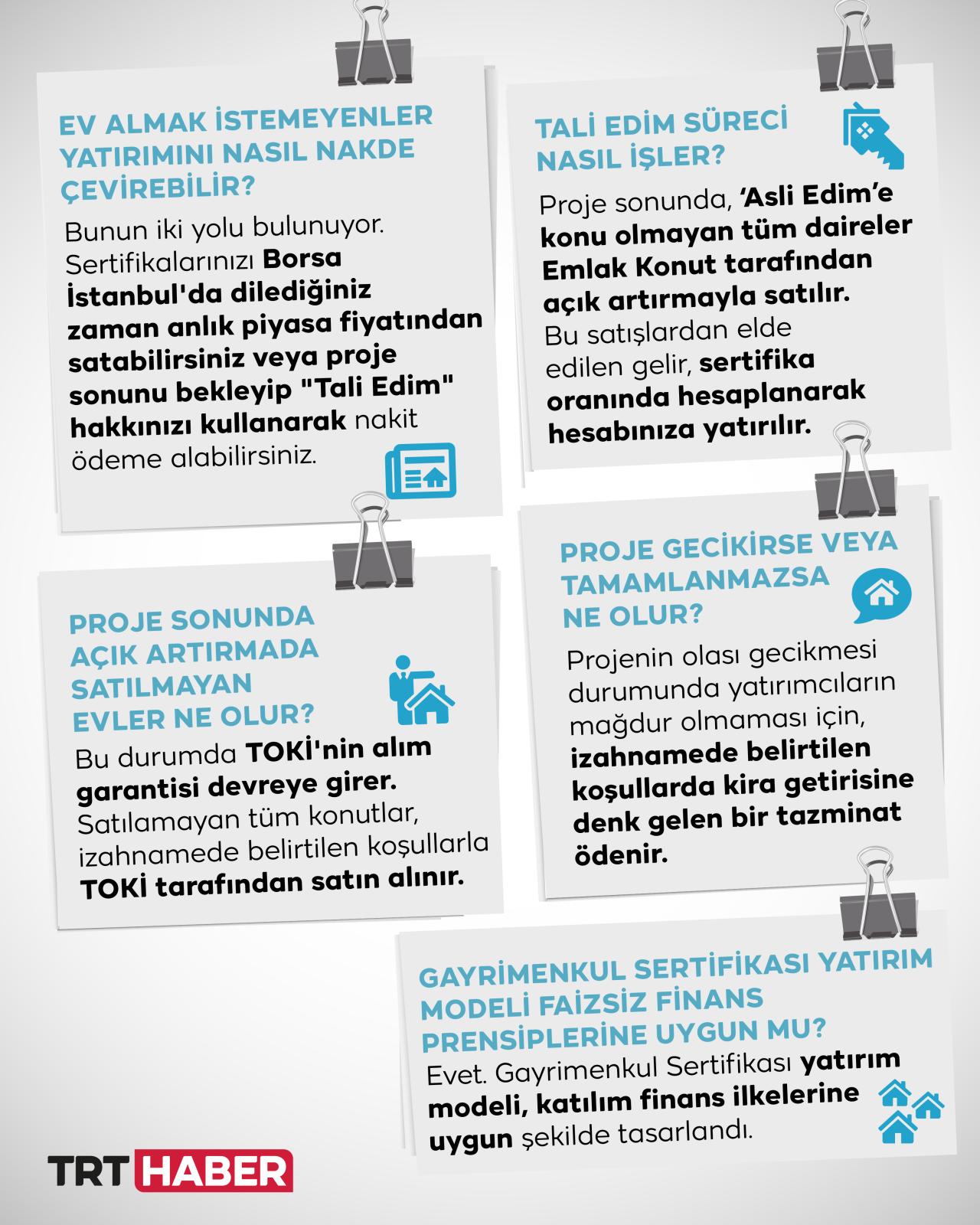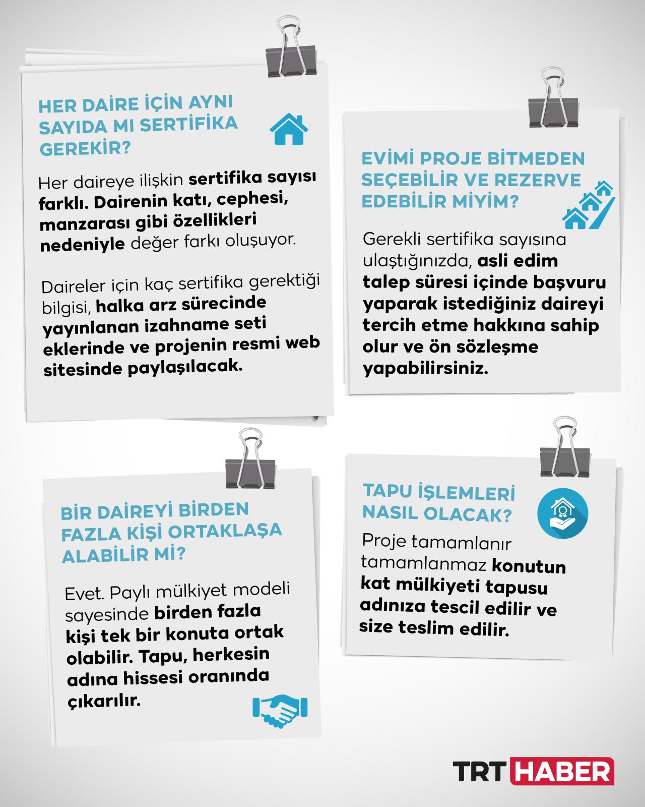 Çevre, Şehircilik ve İklim Değişikliği Bakanlığı, vatandaşlara küçük birikimlerle konut projesine ortak olma imkanı sunan Gayrimenkul Sertifikası projesini hayata geçirdi. Projeye ilişkin merak edilen sorular ve yanıtları....