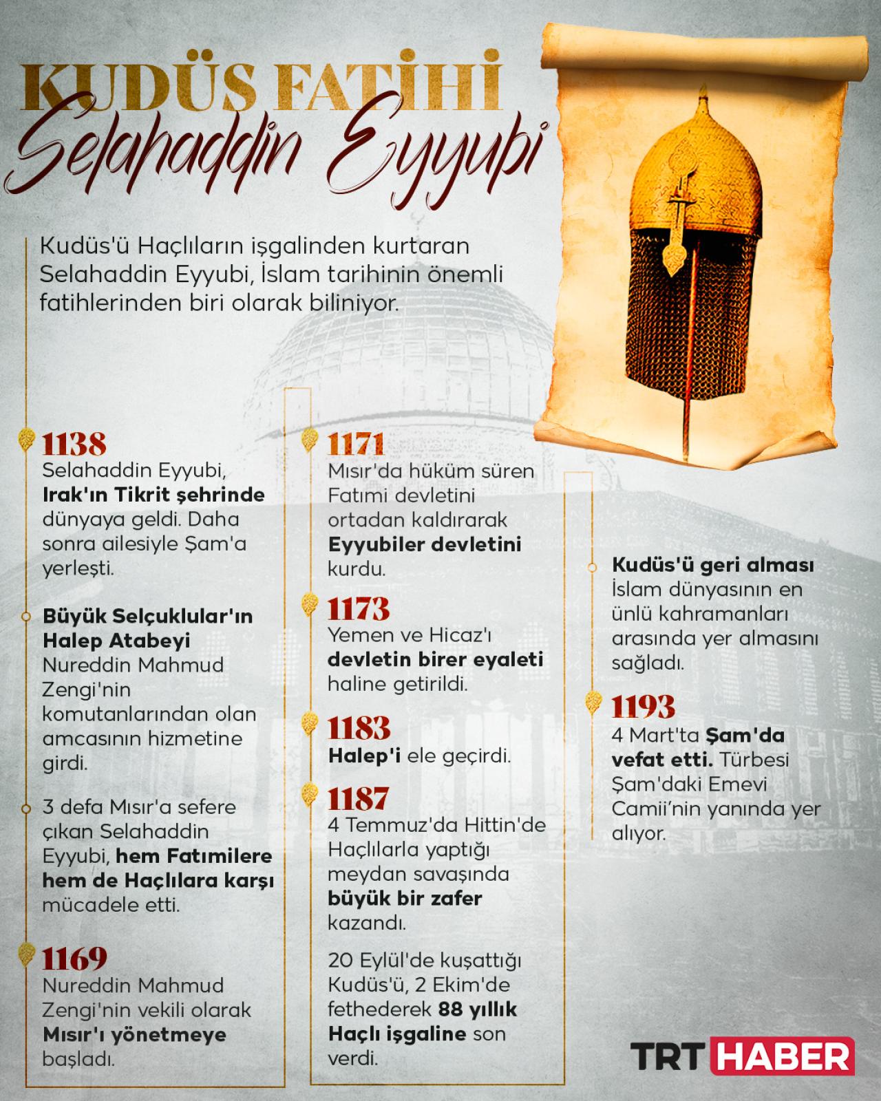 Adı Haçlılara karşı verdiği büyük mücadeleler ve Kudüs’ün fethiyle özdeşleşen Selahaddin Eyyubi, 832 yıl önce Şam'da vefat etti.