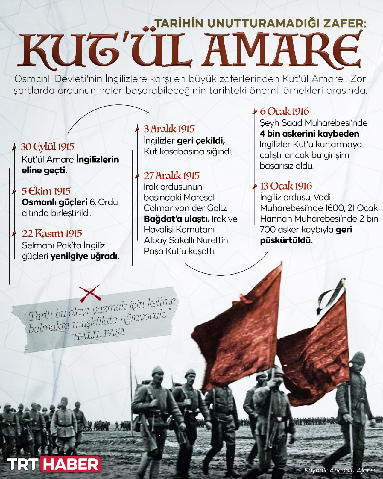 "Tarih bu olayı yazmak için kelime bulmakta müşkülata uğrayacak..." Osmanlı İmparatorluğu'nun İngilizlere karşı en büyük zaferlerinden Kut'ül Amare... Zor şartlarda ordunun neler başarabileceğinin tarihteki önemli örnekleri arasında yer alıyor.
