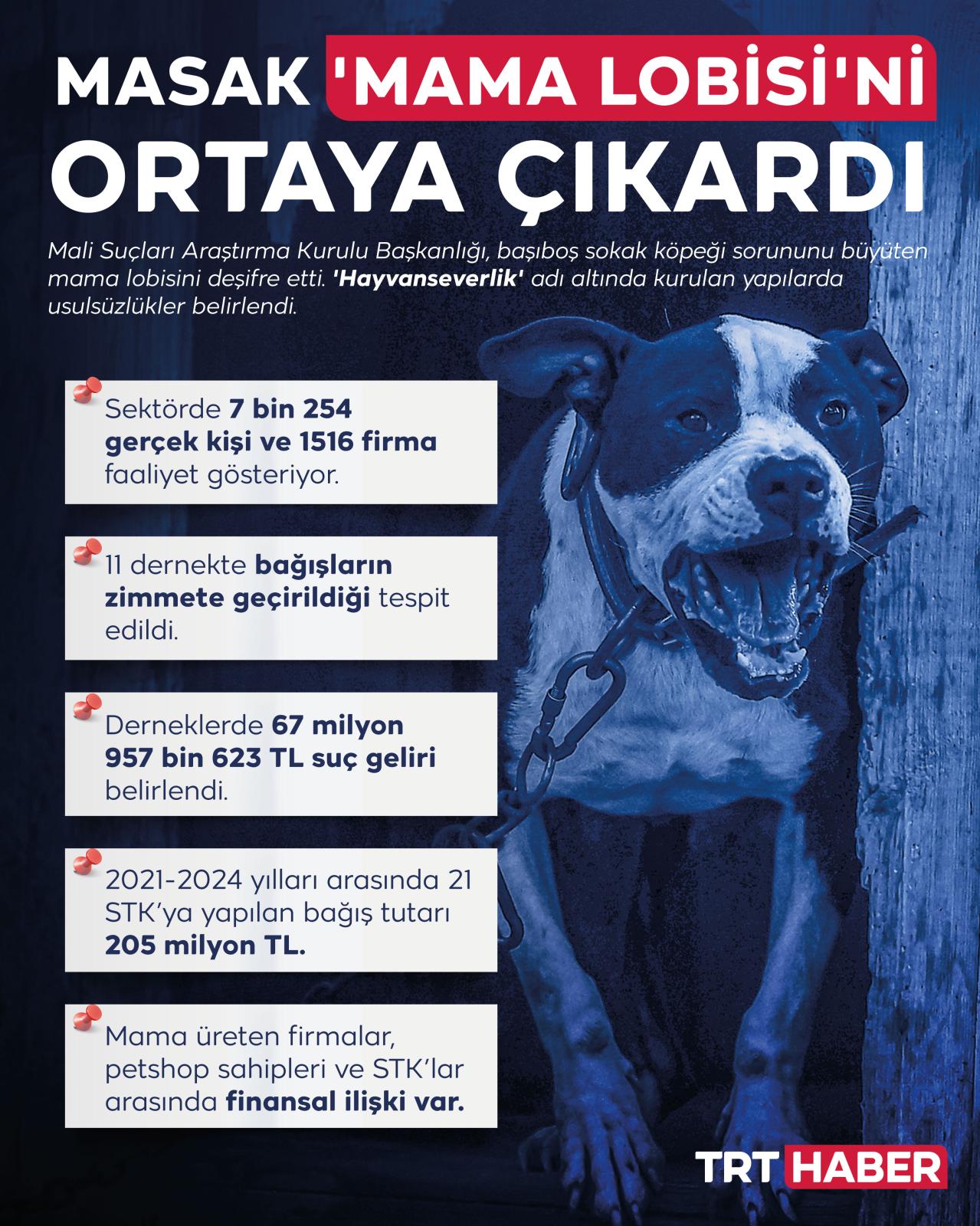 MASAK, 'mama lobisi'nin gerçek yüzünü ortaya çıkardı. 'Hayvanseverlik' adı altında faaliyet yürüten STK'ların mama üreticileriyle ilişkili olduğu tespit edildi.