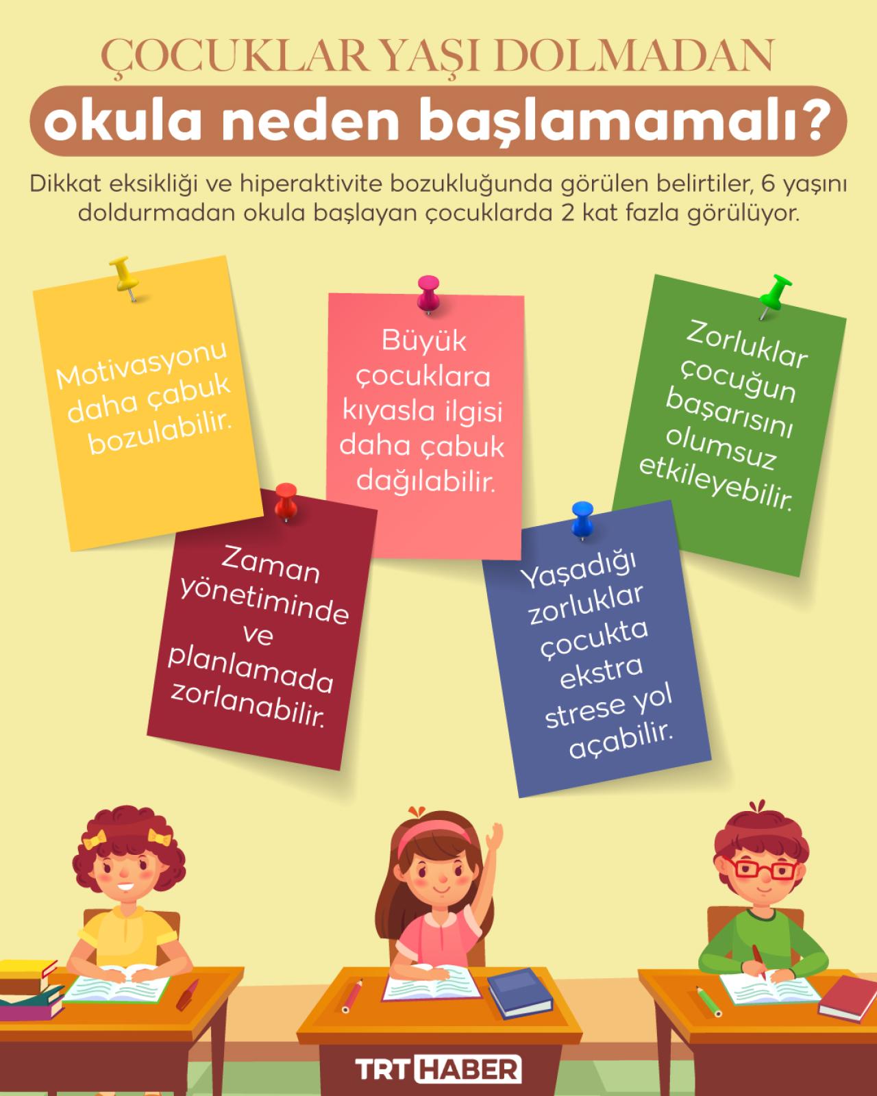 Harvard Üniversitesi'nde yapılan bir çalışmaya göre, okul hayatına erken başlayan çocukların dikkat eksikliği ve hiperaktivite bozukluğu (DEHB) teşhisi alma ihtimali aynı sınıftaki kendilerinden daha büyük arkadaşlarına kıyasla yüzde 34 daha fazla. Peki, neden?