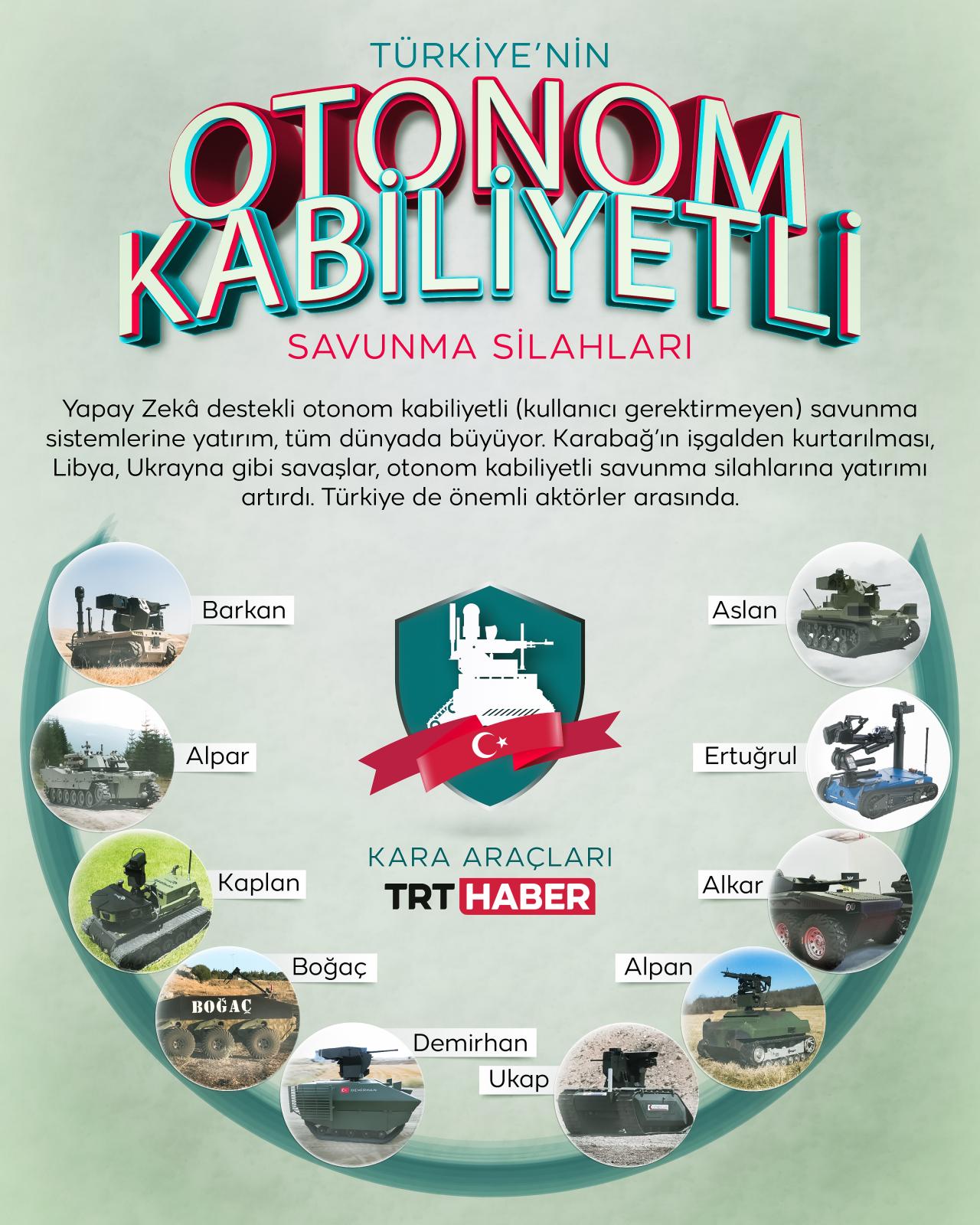 İnsan gibi düşünen, tehdidi belirleyen ve savunma görevini yerine getiren otonom silah teknolojisi dev adımlarla ilerliyor. ABD, Çin, Rusya ve İngiltere ile birlikte Türkiye, otonom savunmada öne çıkan ülkeler arasına girdi. Barkan, Alpar, Bayraktar TB2, Aksungur, Ulaq ve Albatros-K gibi araçlar, karada, havada ve denizde görev yapıyor.