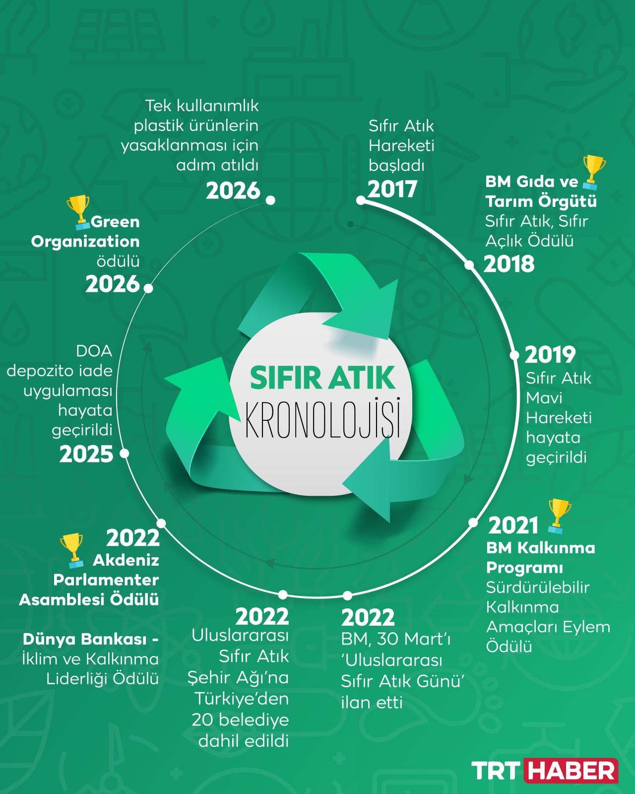 2017 yılında Emine Erdoğan önderliğinde başlatılan Sıfır Atık hareketi ile geri kazanım oranı yüzde 37’ye yükseldi. 90 milyon ton atık geri kazandırıldı, ekonomiye 365 milyar lira katkı sağlandı. 105 ülke 30 Mart’ı Sıfır Atık Günü olarak kabul ediyor. ‘Sıfır Atık’, Kasım ayında Antalya’da yapılacak COP31'de de gündemde olacak.