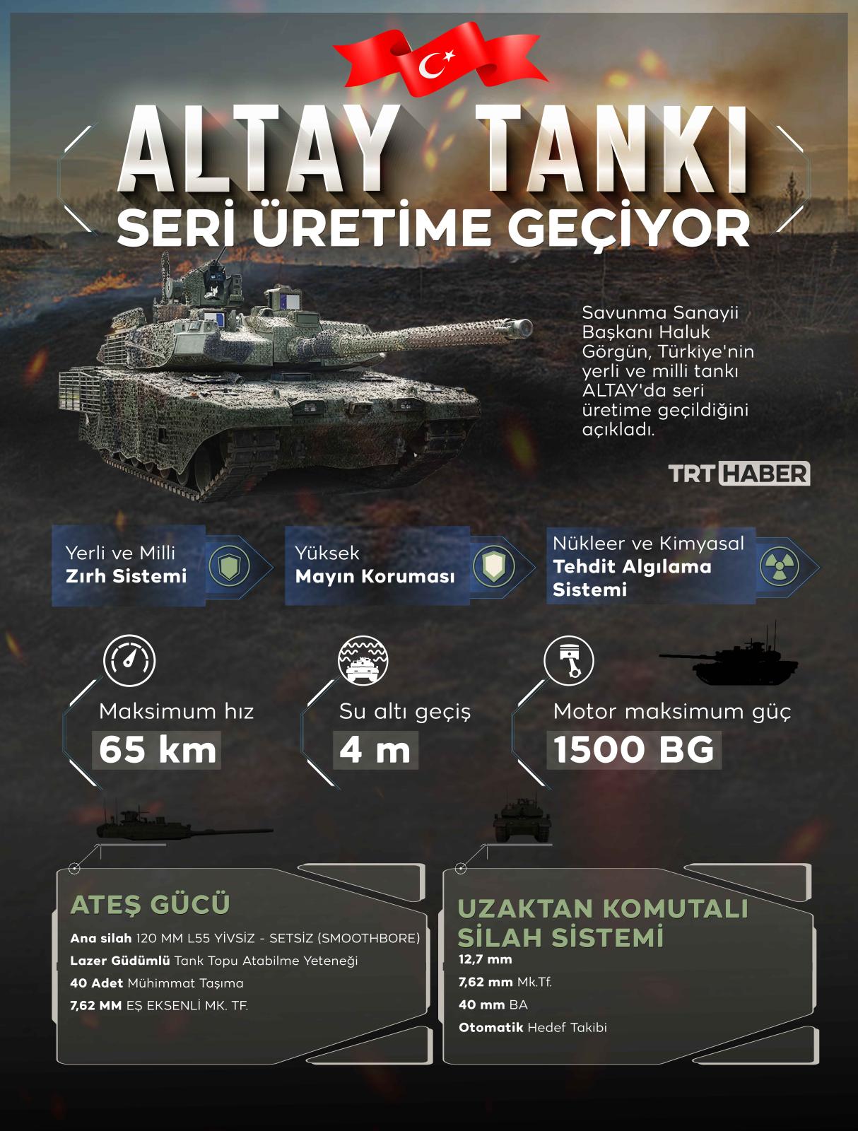 Savunma Sanayii Başkanı Haluk Görgün, TRT Haber'e yaptığı açıklamada Altay tankının seri üretime geçtiği müjdesini verdi.