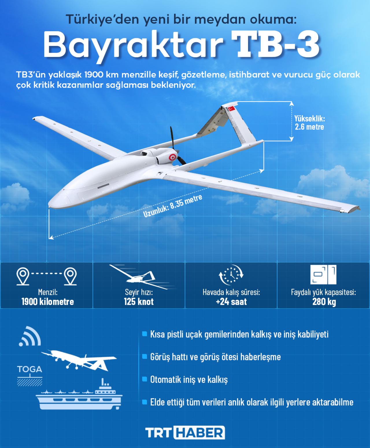 Son yıllarda yerli ve milli insansız hava araçlarında ortaya koyduğu performansla dünyaya bu alanda yön veren ülkelerden biri olan Türkiye, yakın gelecekte ilk uçuşunu yapacak TB-3 ile yeni bir dönemin kapısını aralayacak. Yaklaşık 1900 km menzille TB-3’ün keşif, gözetleme, istihbarat ve vurucu güç olarak çok kritik kazanımlar sağlaması bekleniyor.
