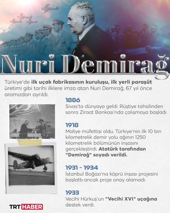 Türk havacılığının unutulmaz isimlerinden Nuri Demirağ, vefatının yıl dönümünde anılıyor.