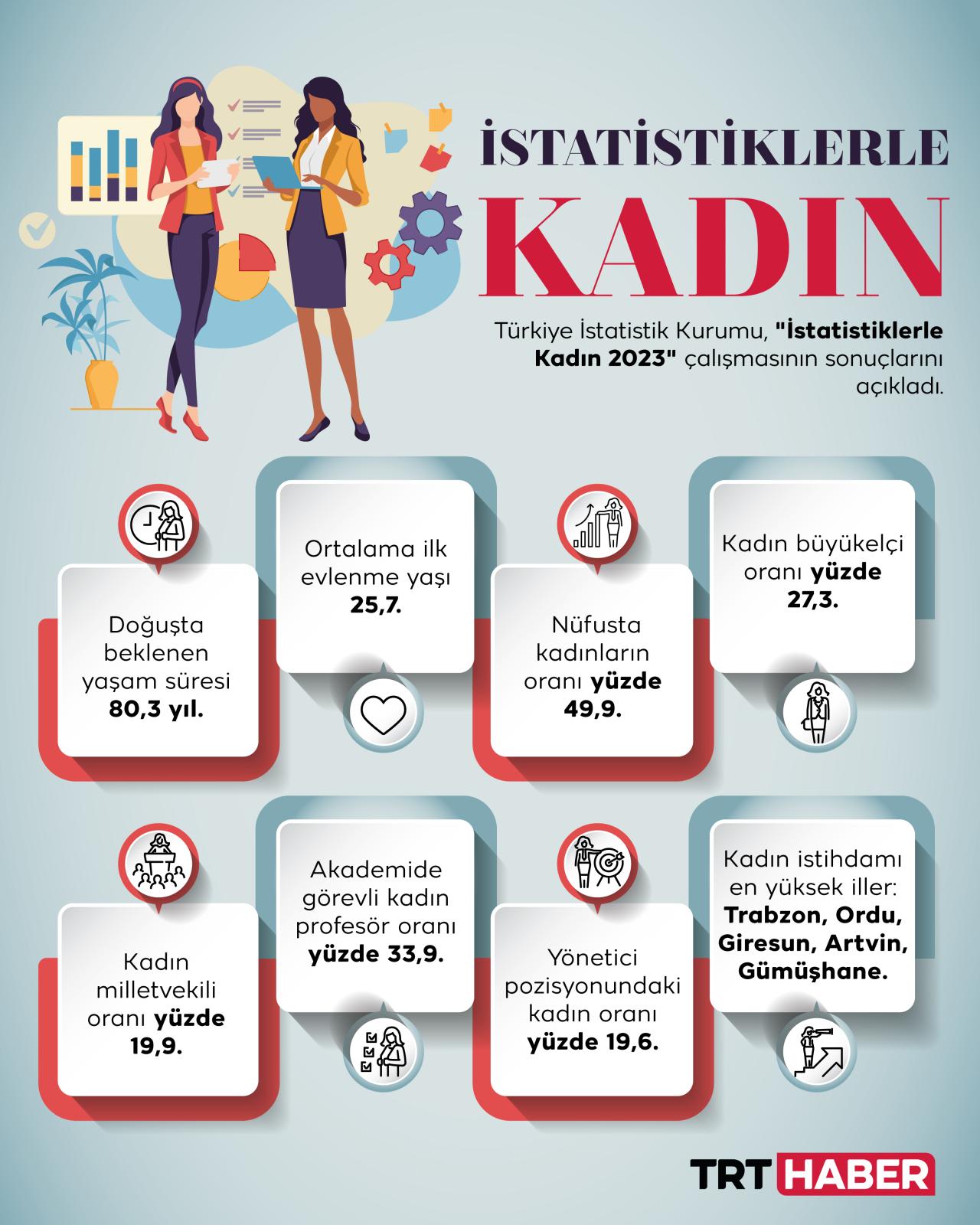 TÜİK'in açıkladığı "İstatistiklerle Kadın, 2023" çalışmasının sonuçlarına göre, Türkiye nüfusunun yüzde 49,9'unu kadınlar oluşturdu.