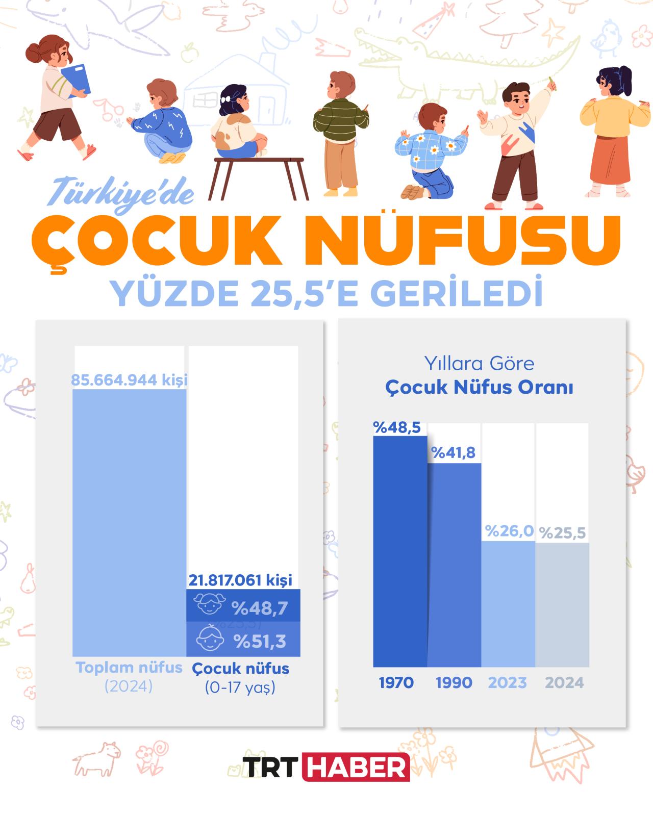 Türkiye’de çocuk nüfusu yüzde 25,5’e geriledi
