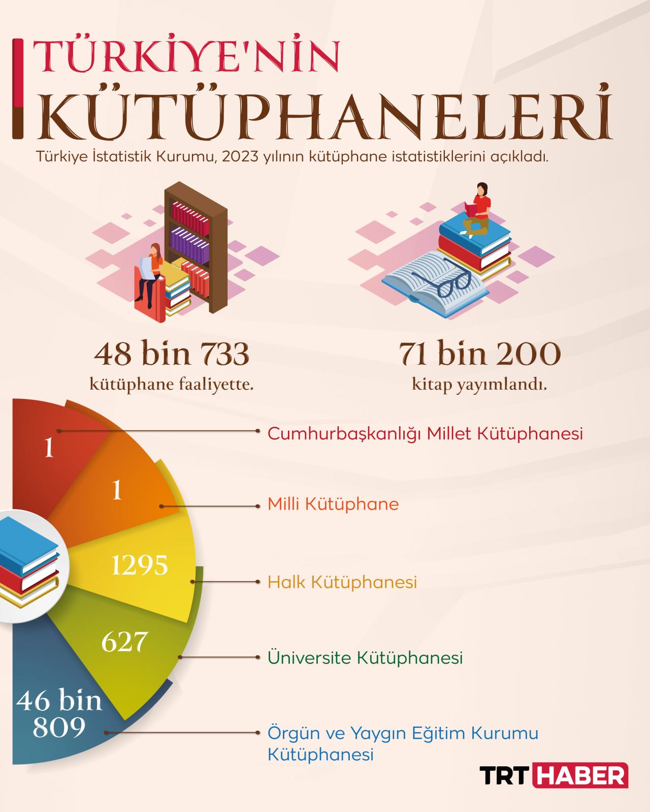 Türkiye'de faaliyet gösteren kütüphane sayısı geçen yıl 48 bin 733 olarak kayıtlara geçti.
