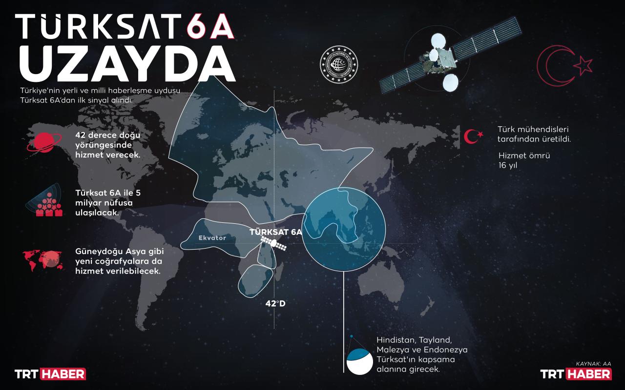 Türkiye'nin ilk yerli ve milli haberleşme uydusu Türksat 6A'nın uzaya gönderilmesiyle ülkenin aktif uydu sayısı 9'a yükseldi.
