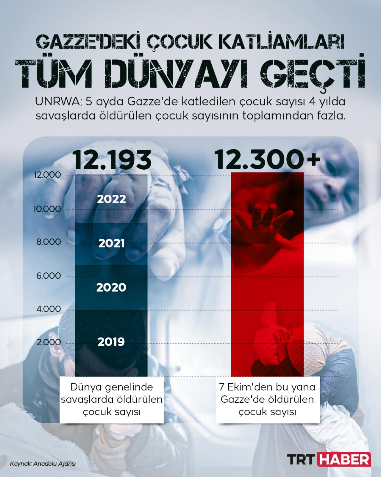 UNRWA Genel Komiseri Lazzarini, Gazze'de 7 Ekim'den bu yana öldürüldüğü bildirilen çocuk sayısının, dünyada 4 yılda savaşlarda öldürülen çocuk sayısının toplamından daha fazla olduğunu açıkladı.