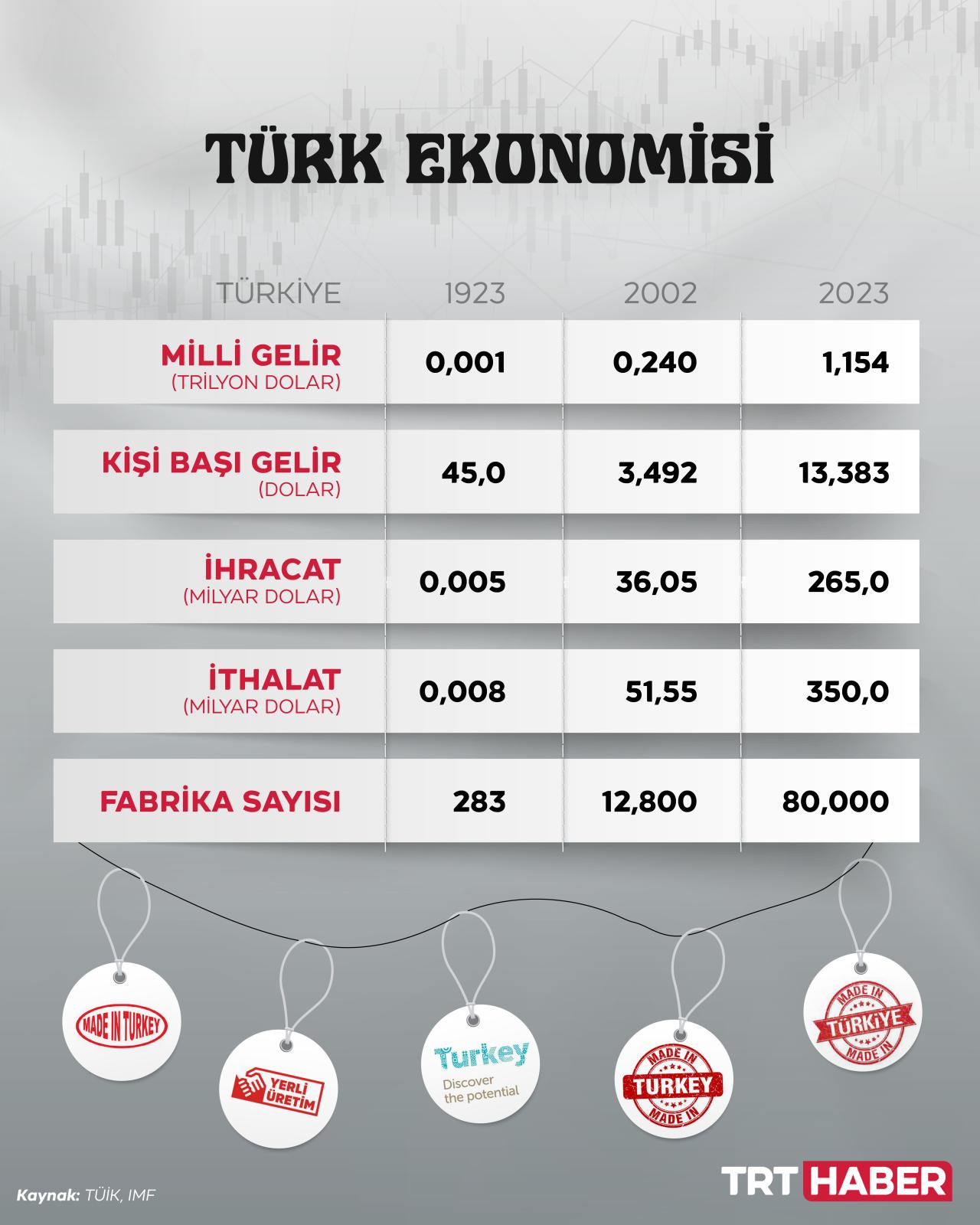 Neredeyse sıfırdan yola çıkan Türkiye Cumhuriyeti, 2023 sonunda ‘trilyon dolarlık’ ekonomi hedefini gerçekleştirmiş olacak. Yerli üretimi ve kullanımını teşvik etmek için başlatılan ‘Yerli Malı Haftası' ise artık ‘Tutum, Yatırım ve Türk Malları Haftası’ olarak kutlanıyor.