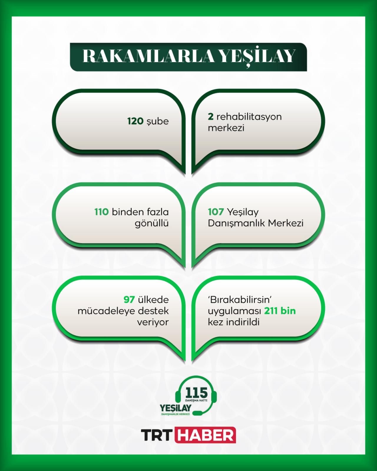 Türkiye’nin bağımlılıkla mücadelede önder kuruluşu olan Yeşilay, 104’üncü yaşını kutluyor. Sigara, alkol, kumar, uyuşturucu ve teknoloji bağımlığı ile mücadele eden dernek, 5 Mart 1920'de, "1. Dünya Savaşı sonrasında işgal güçlerinin bağımlılık yapan maddeleri yaygınlaştırmasına karşı mücadele için" 'Hilal-i Ahdar' adıyla kurulmuştu. 1936'dan beri 'Yeşilay' adını kullanan dernek, 120 şubesi, 2 rehabilitasyon merkezi, 110 binden fazla gönüllüsü ve mobil uygulamaları hizmetini sürdürüyor.