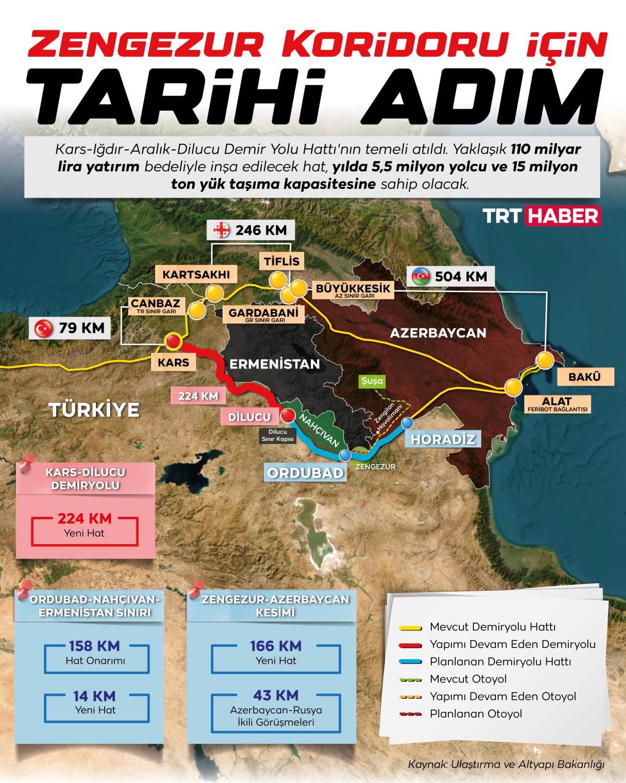 Kars-Iğdır-Aralık-Dilucu Demir Yolu Hattı'nın temeli atıldı. Yaklaşık 110 milyar lira yatırım bedeliyle inşa edilecek hat, yılda 5,5 milyon yolcu ve 15 milyon ton yük taşıma kapasitesine sahip olacak.