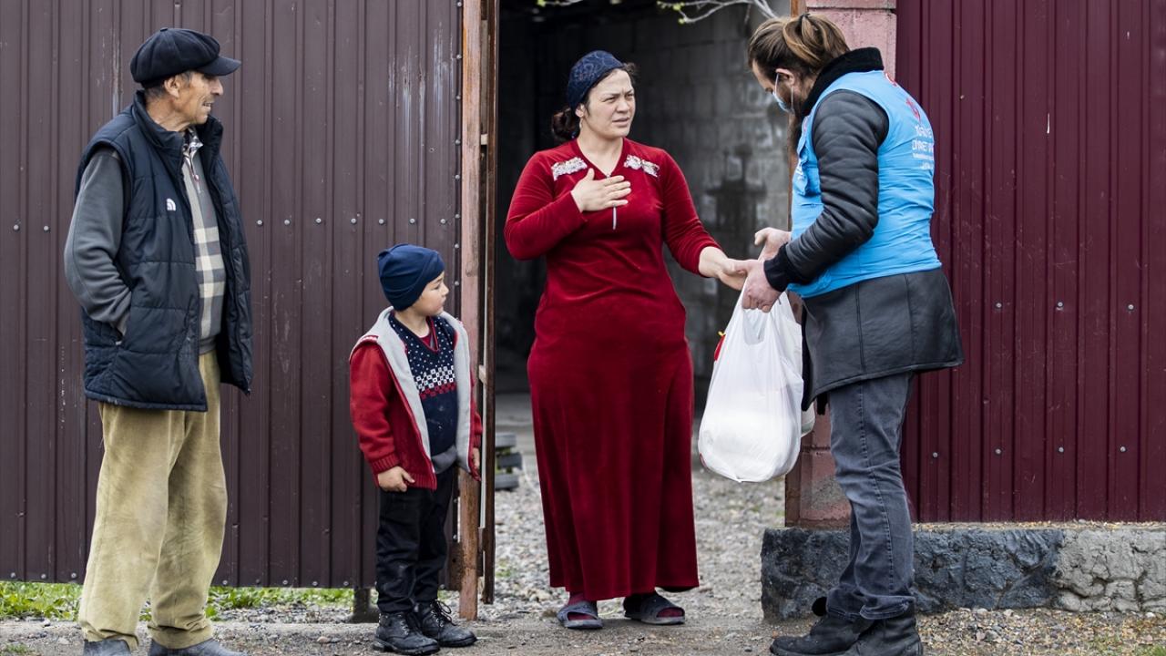 Ahıska Türkleri Derneği Başkanı Atamşa Dursunov`un da bulunduğu gönüllüler, un, pirinç, şeker, yağ ve makarnadan oluşan yardımları sokak sokak gezerek ihtiyaç sahiplerine teslim etti.