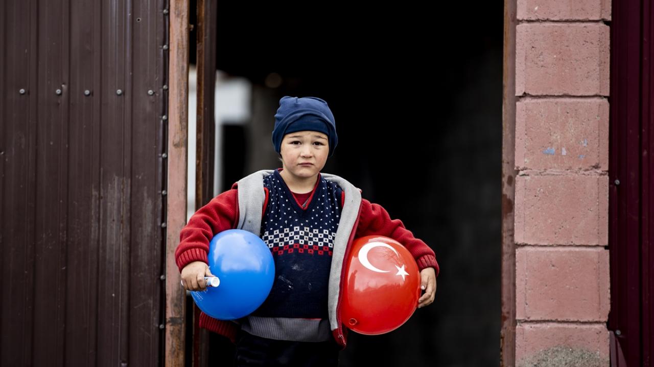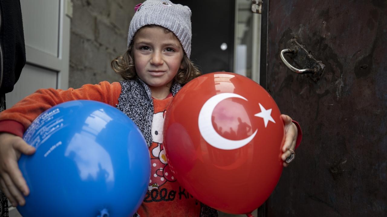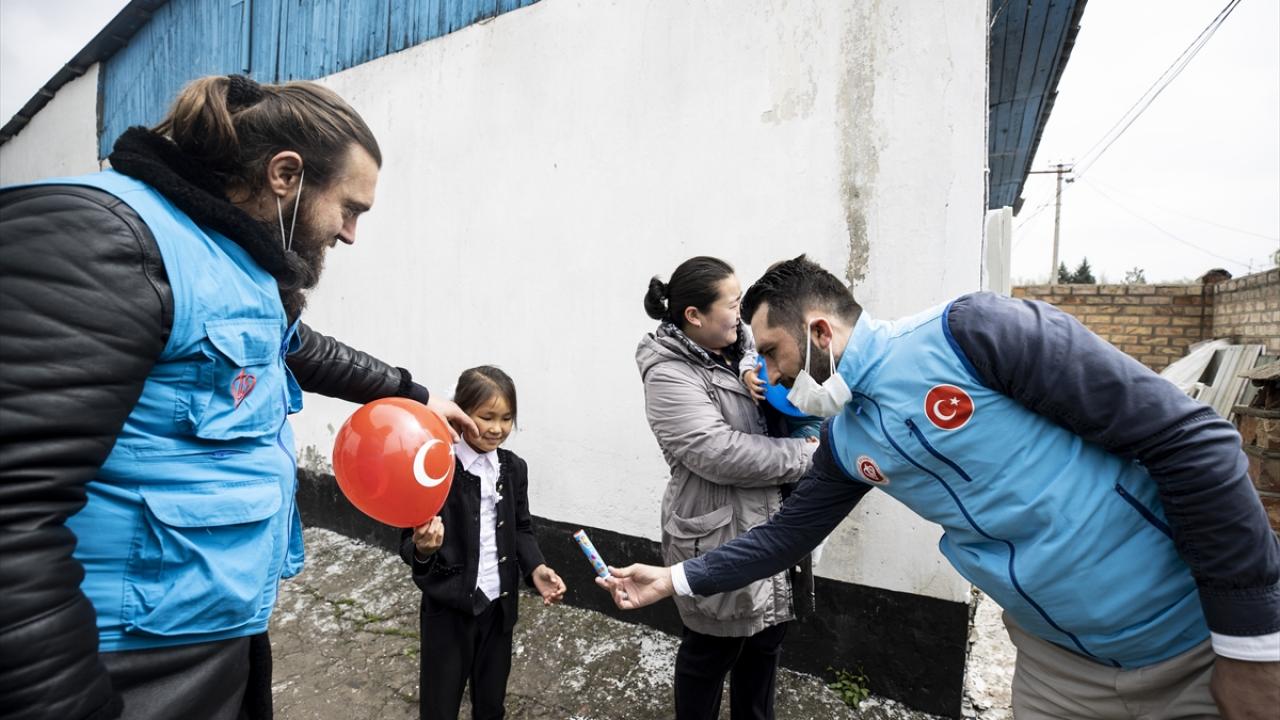 Yardımın yanı sıra çocuklara Türk bayraklı ve TDK logolu balonlar da dağıtan dizi oyuncusu Özen, Türk gençleri tarafından yoğun ilgi gördü.