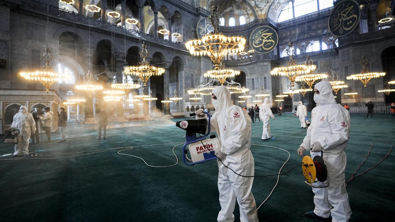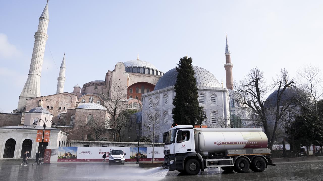 Fatih Belediyesi ekipleri, ramazana günler kala Ayasofya-i Kebir Cami-i Şerifi'nde temizlik ve dezenfekte çalışması yaptı. Belediyenin Çevre Koruma ve Kontrol Müdürlüğü ekiplerince yapılan çalışmada, caminin içi ve çevresi temizlendi.