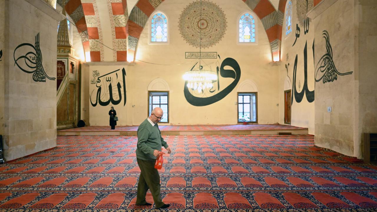 Edirne'deki camiler temizlenip gül suyu ile yıkanarak ramazan ayına hazırlandı.