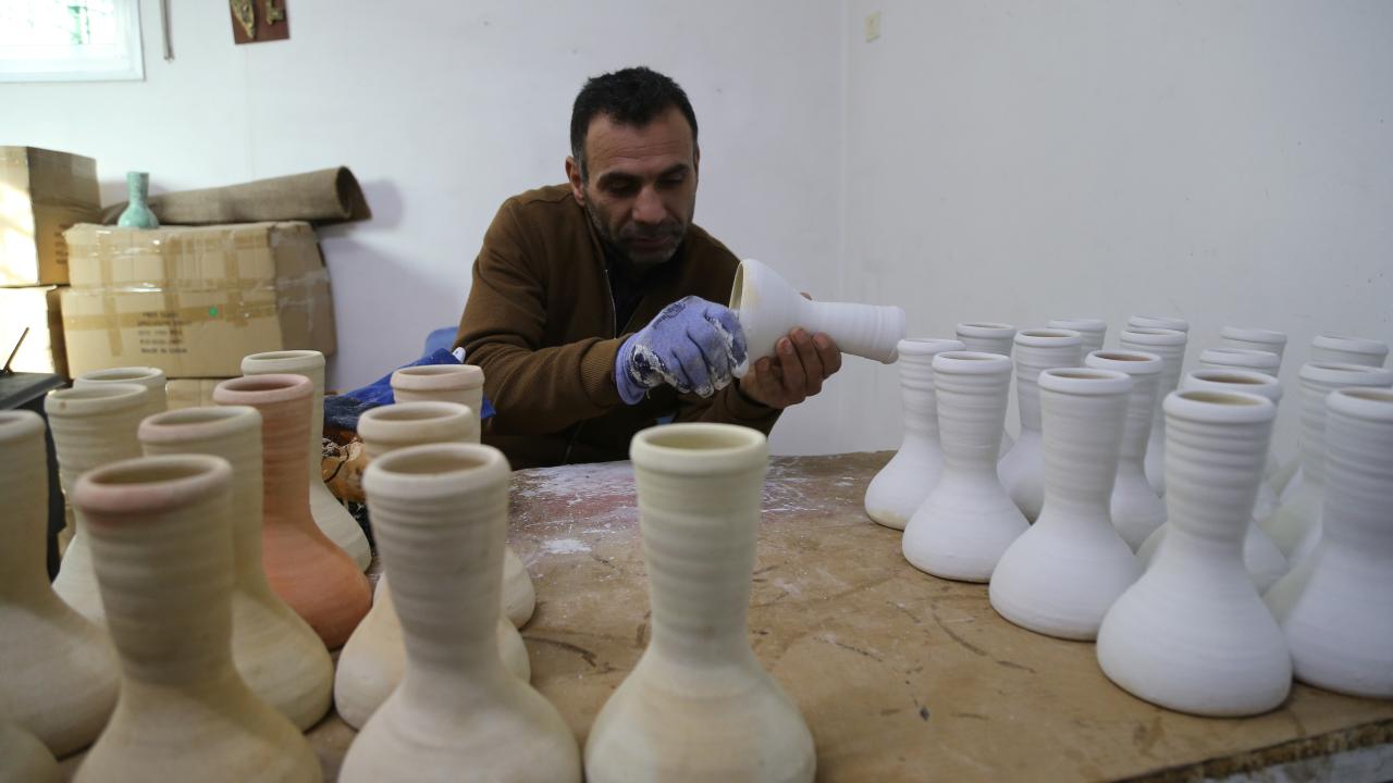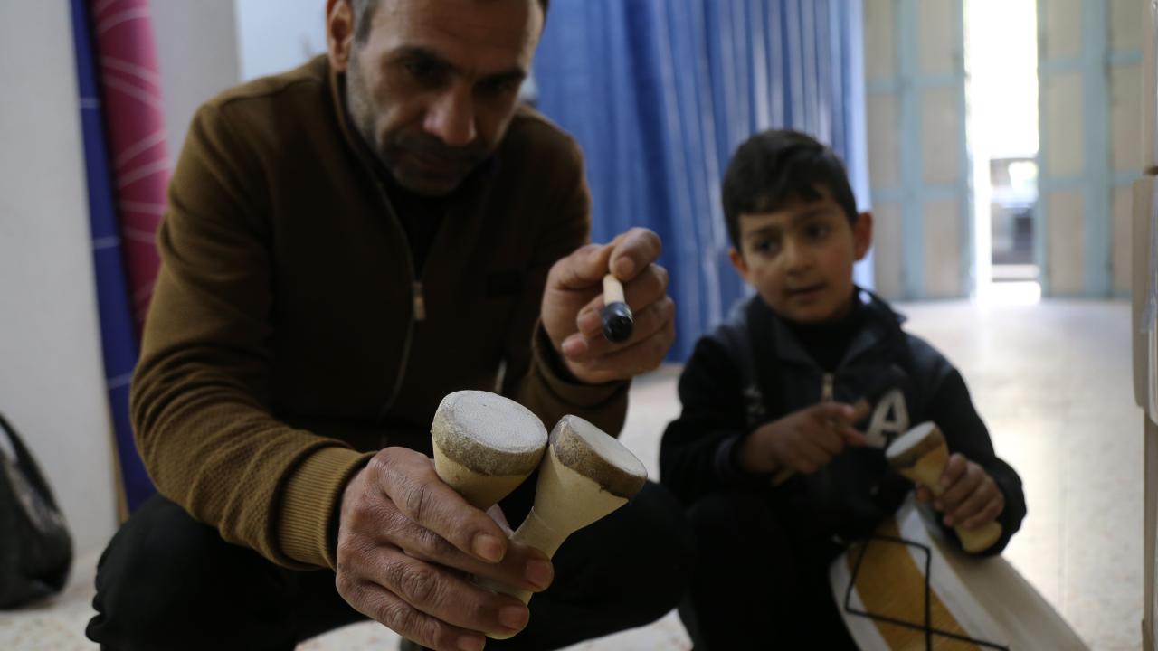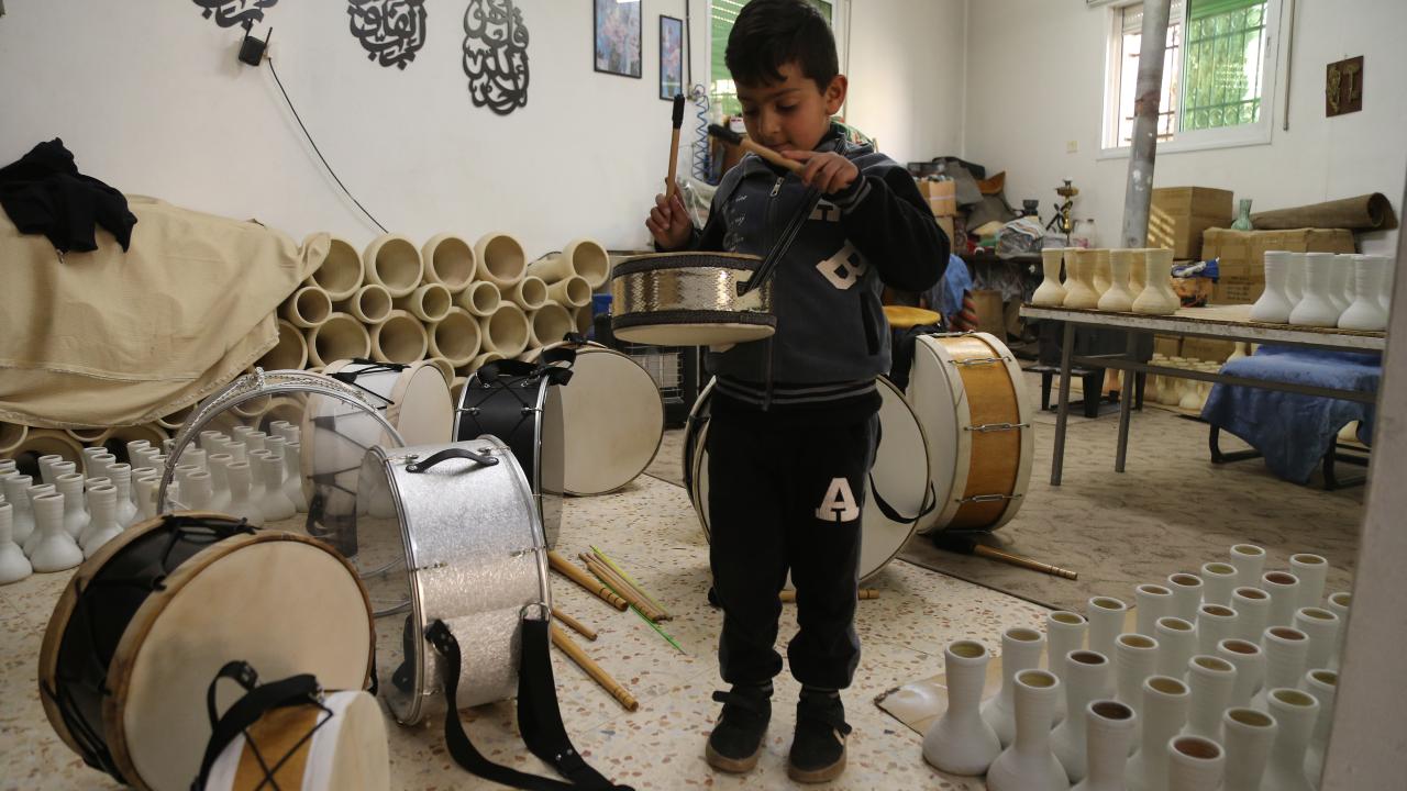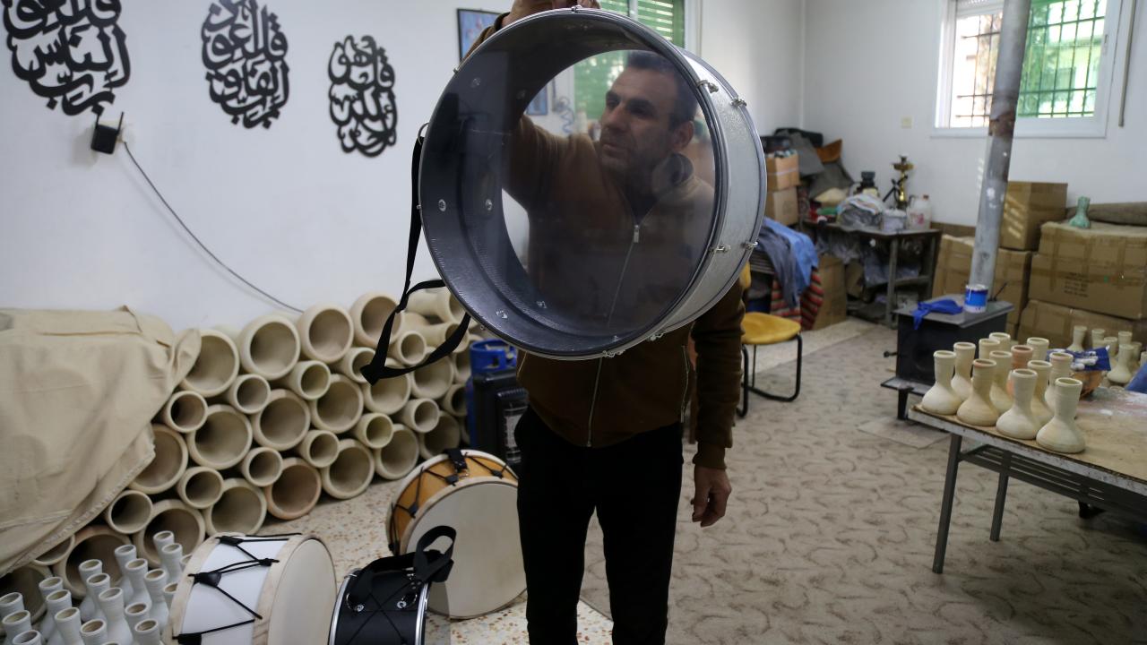 Batı Şeria’nın El Halil kentinde yaşayan 48 yaşındaki Mahmud el-Zateri, ramazan ayı öncesinde hazırlıklarını sürdüren davulcular için geleneksel yöntemlerle ramazan davulu üretiyor.