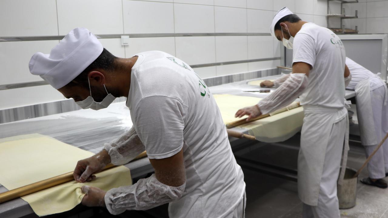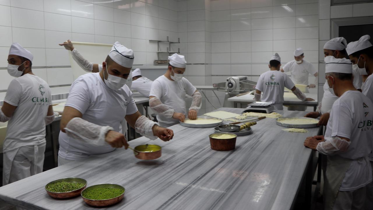 Baklavası ve fıstığıyla ünlü Gaziantep'te baklava üreticileri, Ramazan Bayramı dolayısıyla yurt içi ve yurt dışından gelen siparişleri yetiştirmek için hummalı çalışıyor.