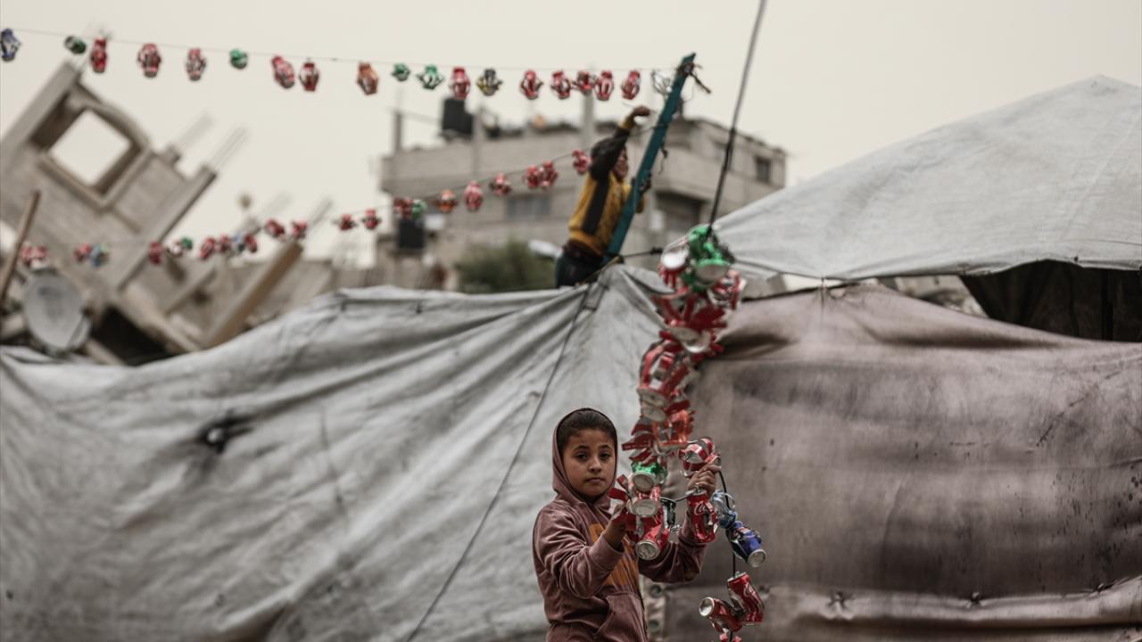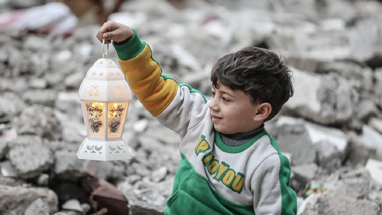 Gazze Şeridi’nin orta kesimindeki Bureyc Mülteci Kampı’nda, iki yılı aşkın süredir devam eden savaşta yıkılan evlerin enkazı arasında çocuklar, ramazan ayının yaklaşmasını sevinçle karşılıyor.