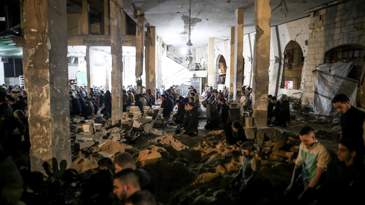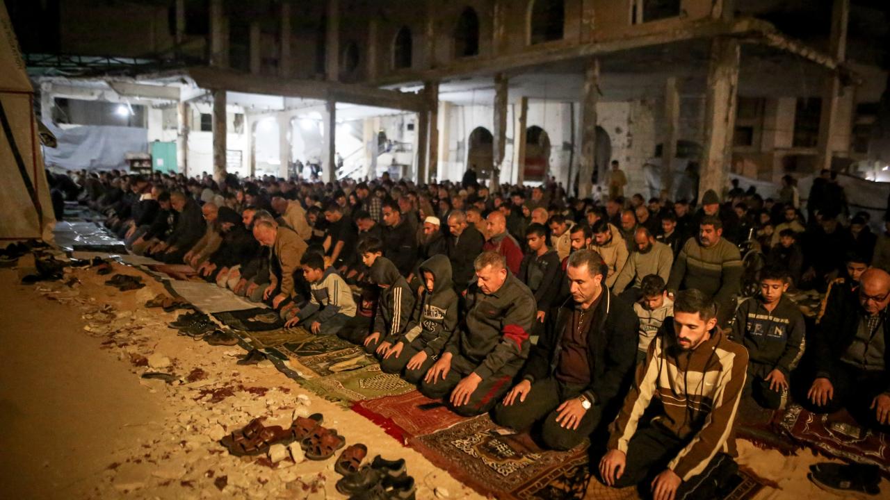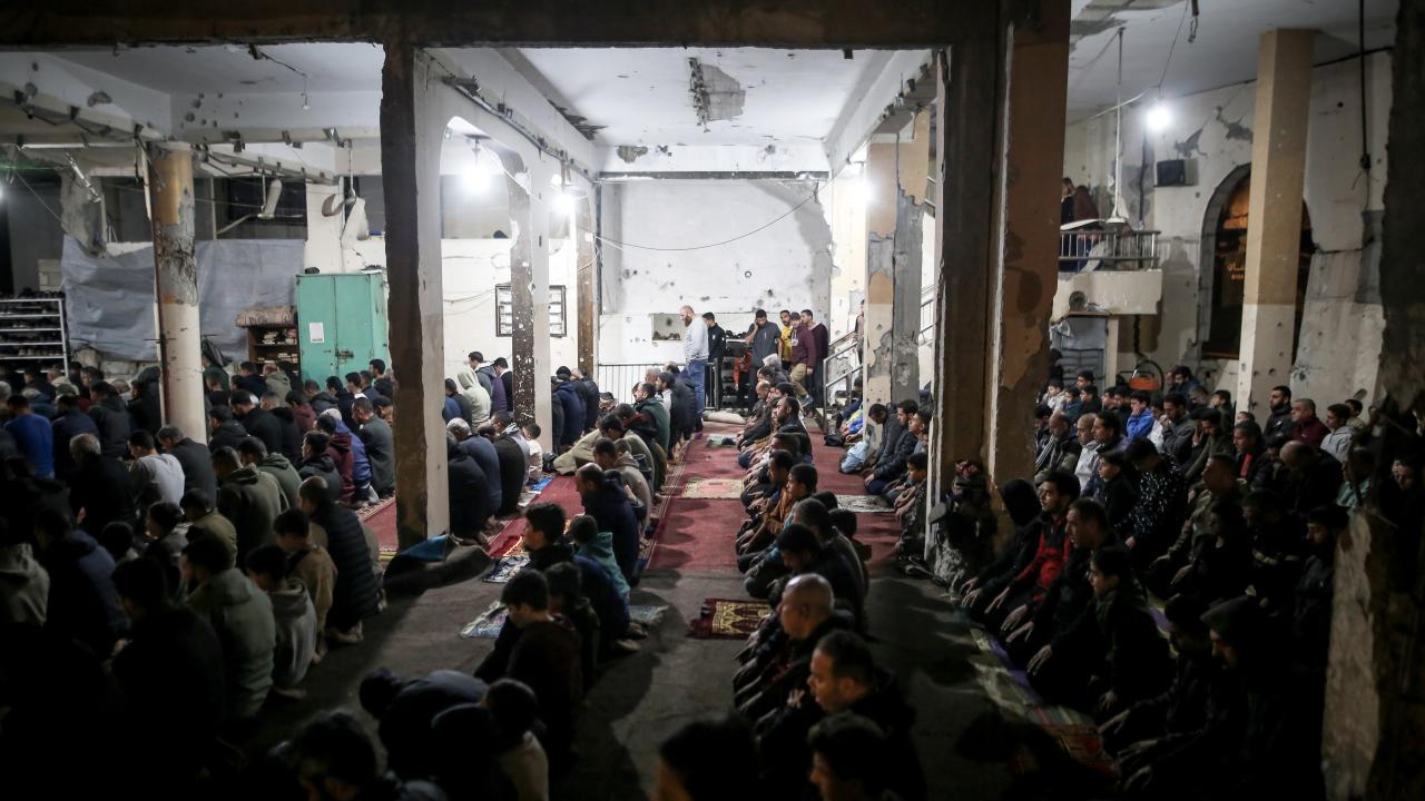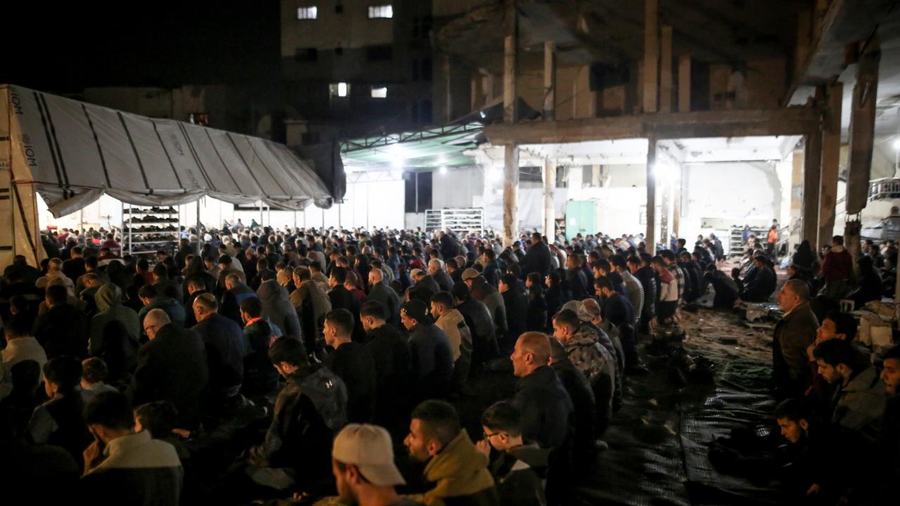 Gazze Şeridi'ndeki Filistinliler, ramazanın ilk teravih namazını İsrail saldırılarında yıkılan Gazze kentindeki Al-Kanz Camii'nin enkazı üzerinde kıldı.