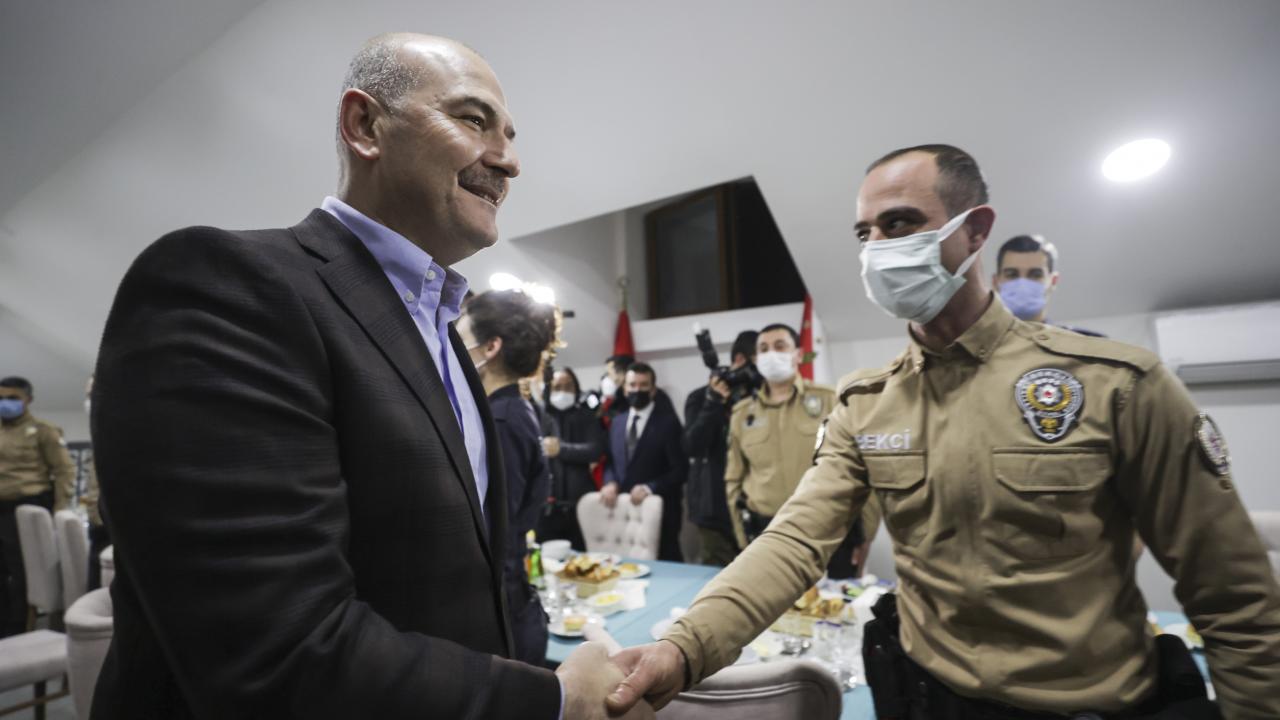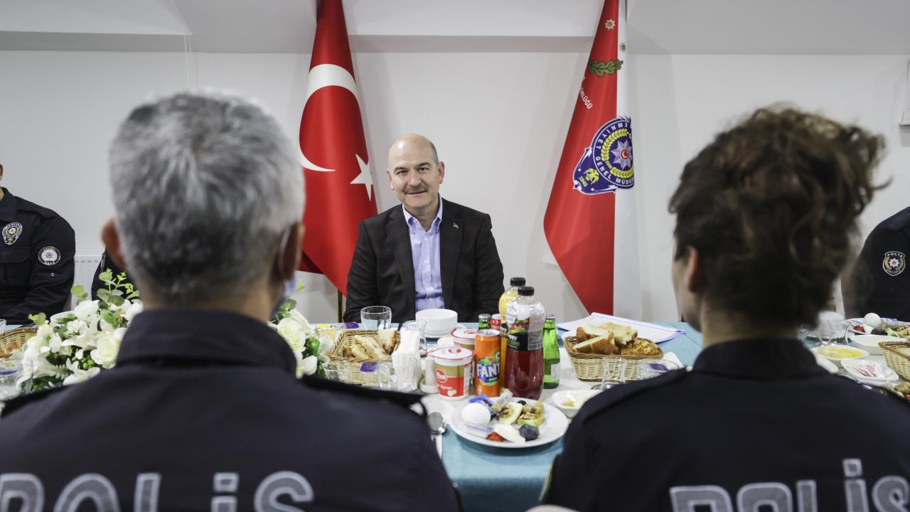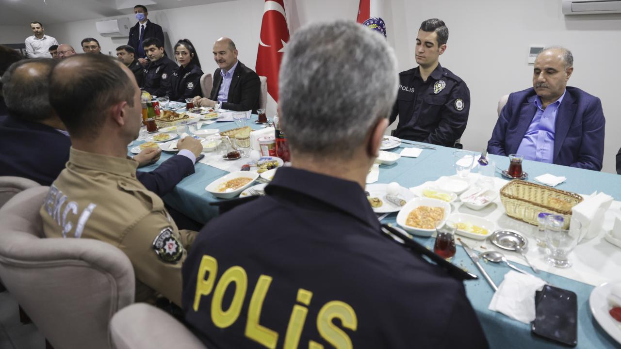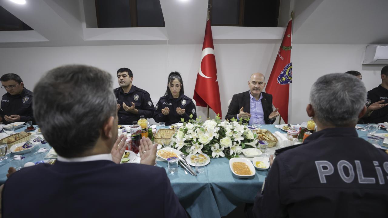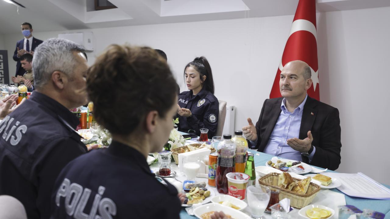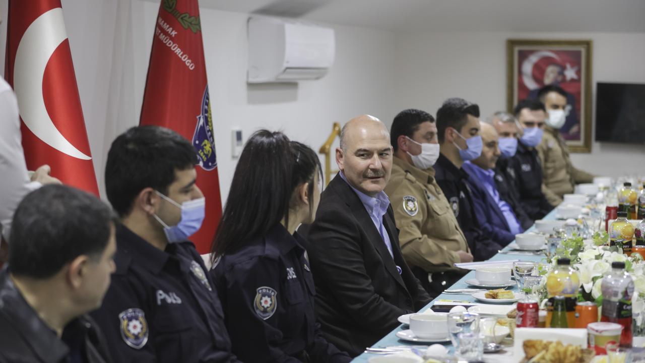 İçişleri Bakanı Süleyman Soylu, Mamak Tuzluçayır Şehit Erkan Serdar Sallar Polis Merkezi Amirliğinde görevli polis ve bekçilerle sahur yaptı.