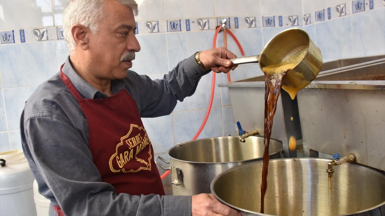 Yapılışı hakkında bilgi veren Yılmaz, "Meyan kökünü tarçın, karabiber ve biraz su ekleyerek yoğuruyoruz. Bir saat bekledikten sonra su ile karıştırılan meyan şerbetini poşetlere koyup tüketicilere sunuyoruz. Şu anda günlük 300 litre meyan şerbeti üretiyoruz." dedi.