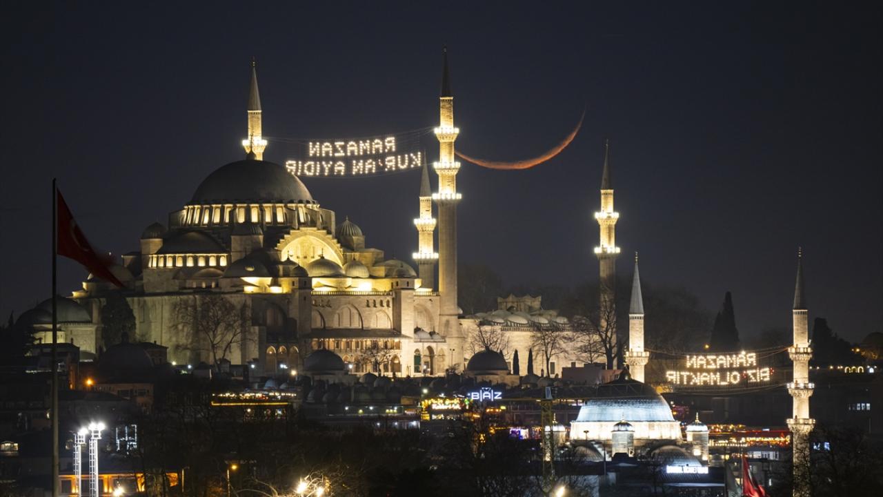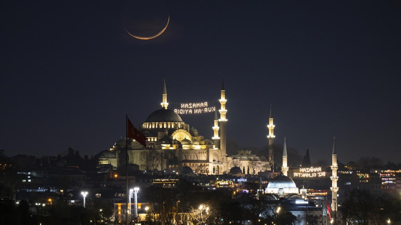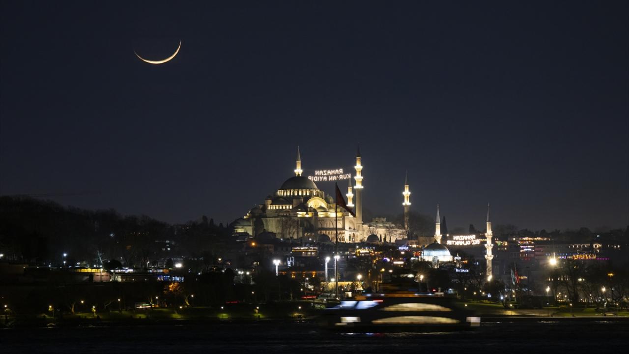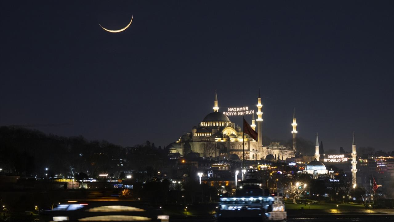 İstanbul'da ramazan ayı hilali, Süleymaniye Camii ile birlikte görüntülendi.