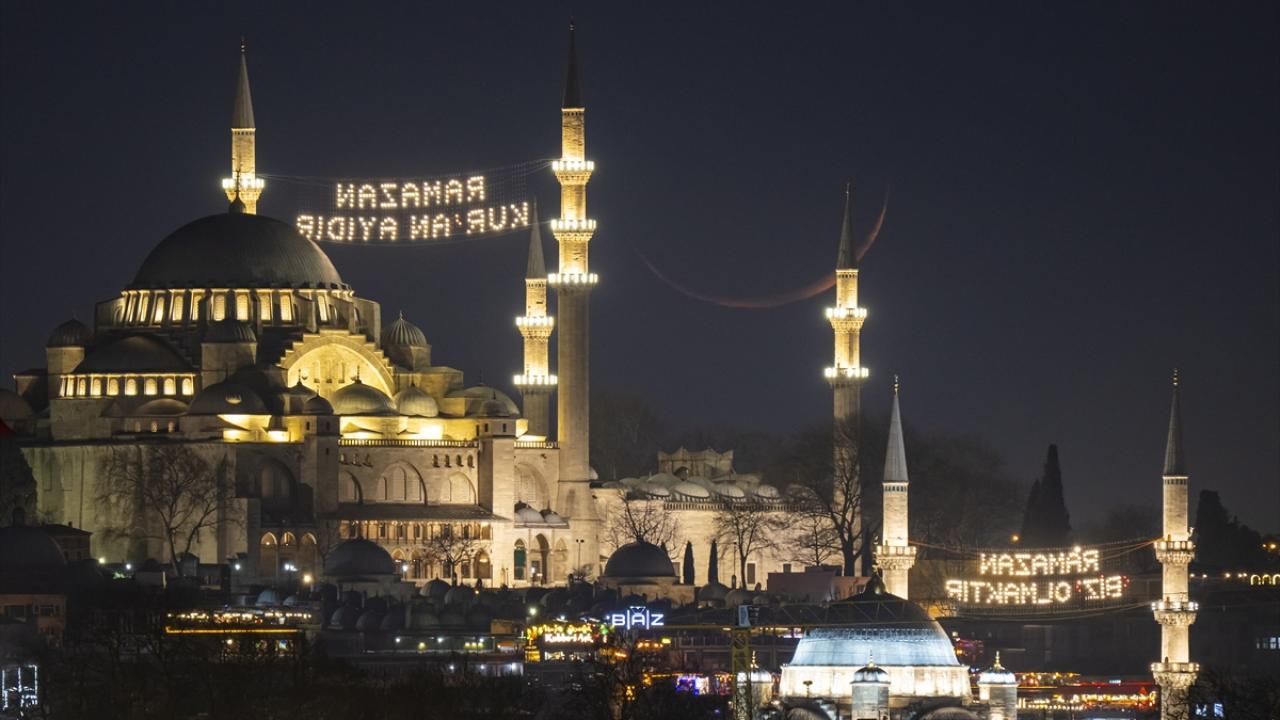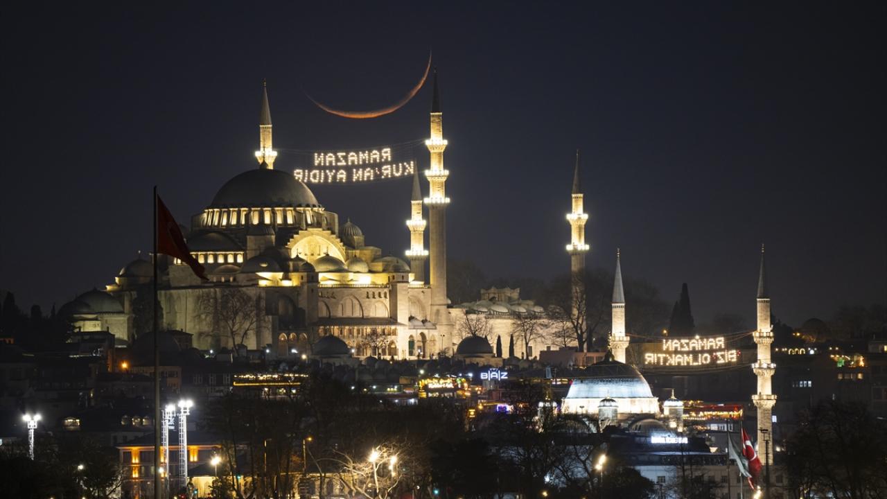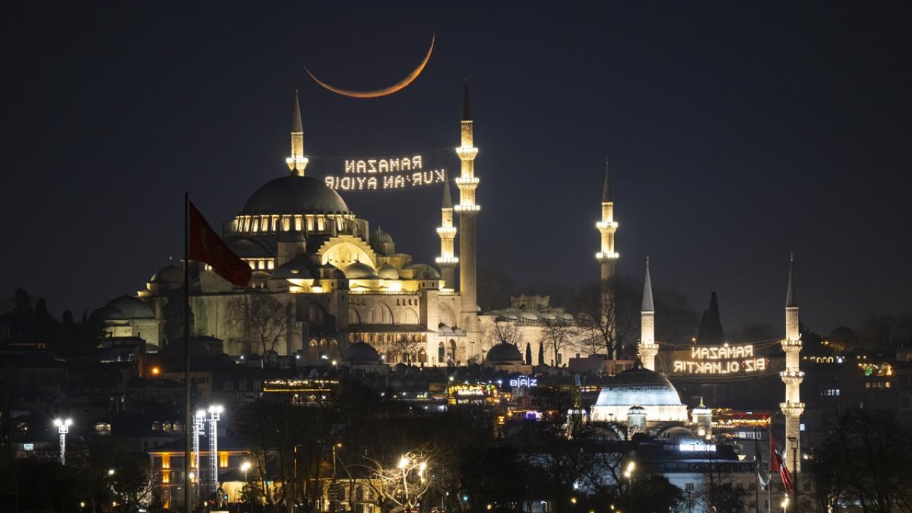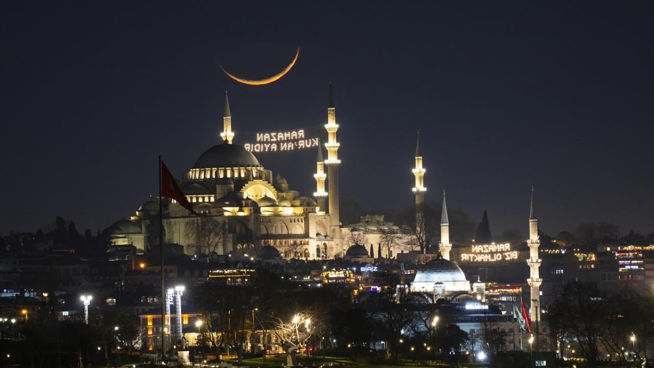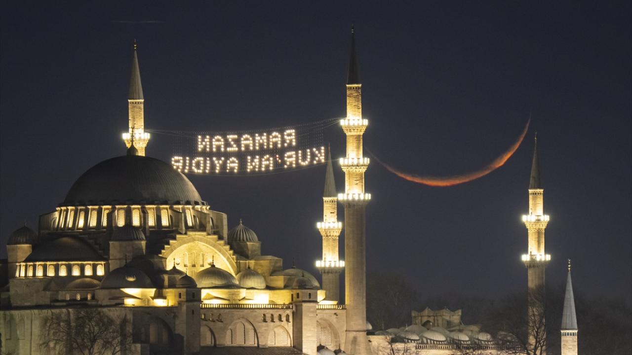 İstanbul'da ramazan ayı hilali, Süleymaniye Camii ile birlikte görüntülendi.