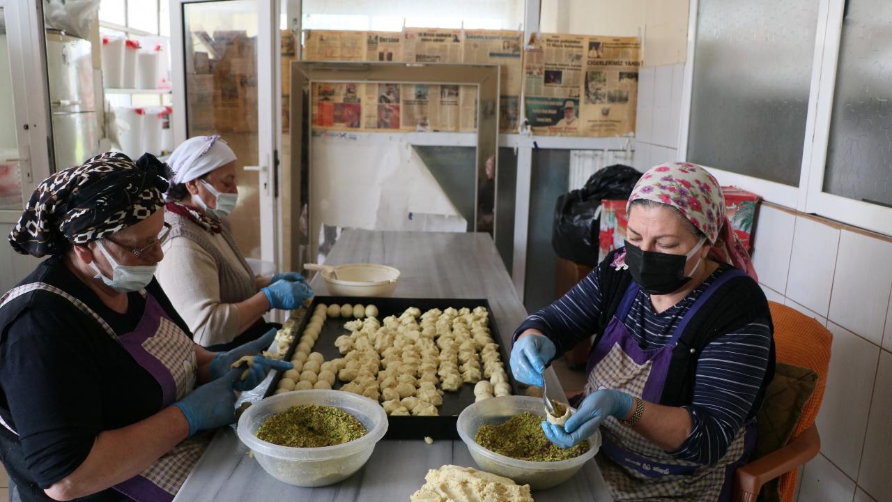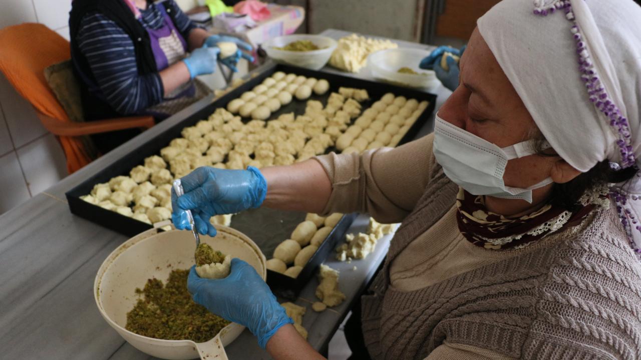 Ayrıca kadınlar eldiven ve maske kullanarak, vatandaşlara sağlıklı kerebiç üretimi yapıyorlar.