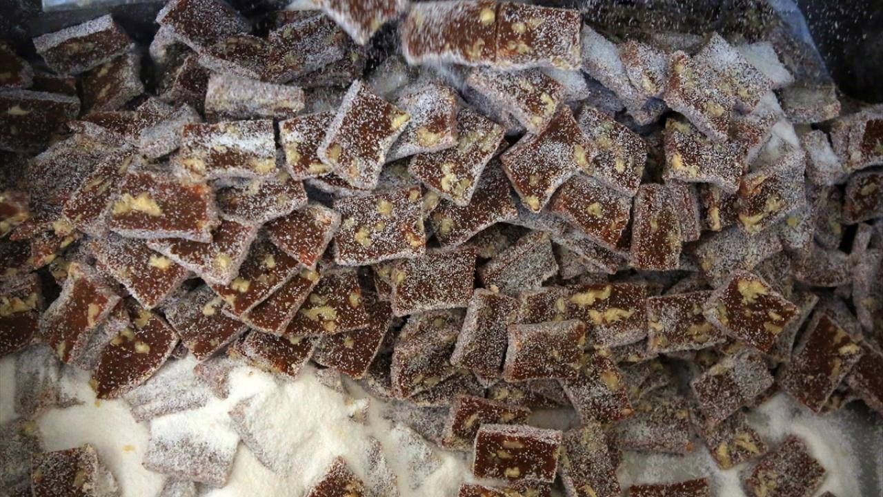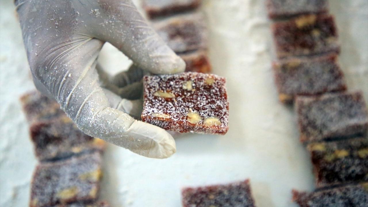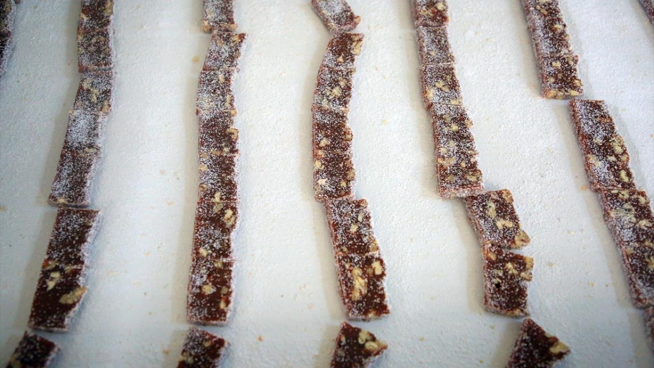 Başka bir kazana alınan marmelat, su, pancar şekeri, baharatlar ve isteğe göre fındık, fıstık, ceviz veya bademle harmanlanıyor. Ustalar tarafından özenle karıştırılan marmelat, istenilen kıvama geldiğinde tablalara boşaltılarak merdane yardımıyla düzleştiriliyor.
