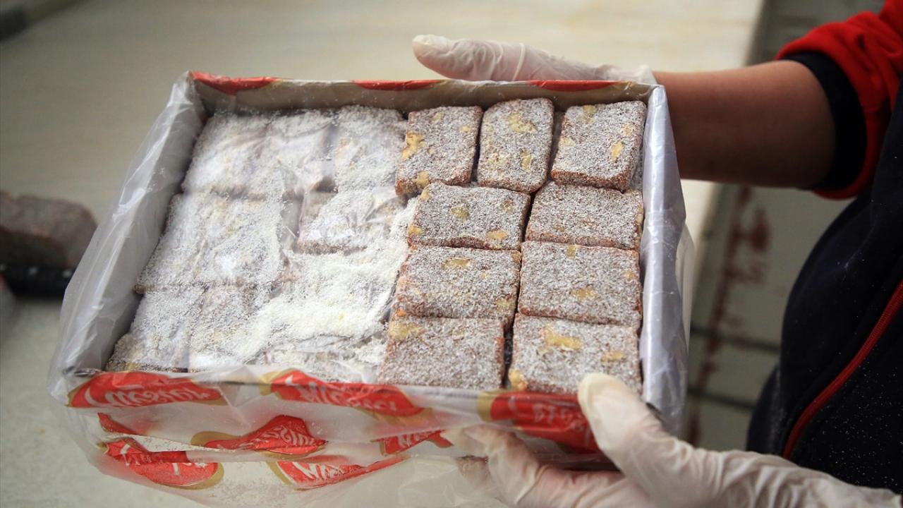 "Tadının oturması" için bir gün oda sıcaklığında bekletilen karışım, makineler yardımıyla çeşitli şekillerde kesiliyor. Ustaların ellerinde Hindistan ceviziyle harmanlanan cezeryeler, paketlendikten sonra müşterilerin beğenisine sunuluyor.
