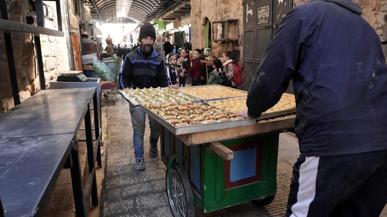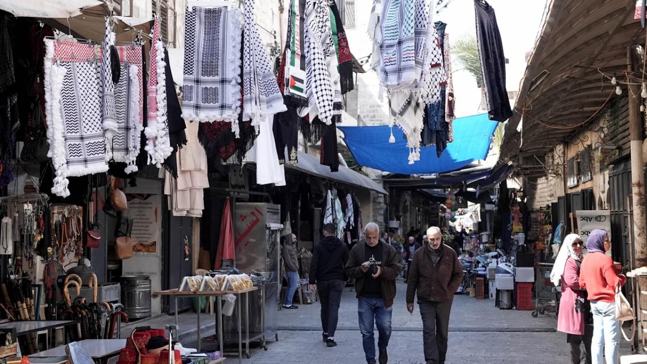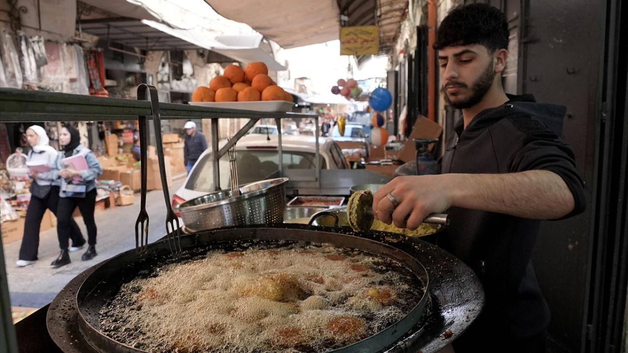 İşgal altında Batı Şeria'nın Nablus kentindeki Filistinliler, Eski Çarşı bölgesine gelerek Ramazan ayı için alışveriş yaptı.