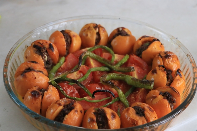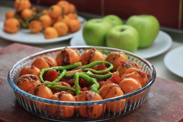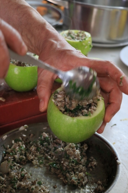 Osmanlı mutfağında yemeklerde sıkça kullanılan meyveler günümüzde artık yemeklerden ayrı tüketilirken Samsunlu aşçı Enis Özdoğan, unutulan bu lezzetleri yaşatıyor. Özdoğan, elma dolması yapıyor.